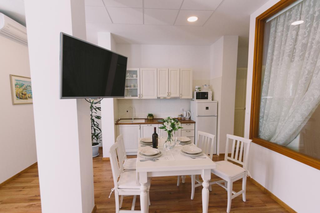 Mehr lesen UnterkunftseinheitenFür die Reservierung eines Apartments ist eine Anzahlung in Höhe einer Übernachtung erforderlich. Den Restbetrag können Sie bei Ihrer Ankunft bezahlen. Nach erfolgter Anzahlung erhalten Sie von uns eine schriftliche Bestätigung Ihrer Reservierung (Gutschein). Die ideale Zeit für die Anreise der Gäste ist ab 13 Uhr, die Abreise bis 10 Uhr.