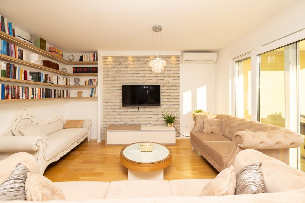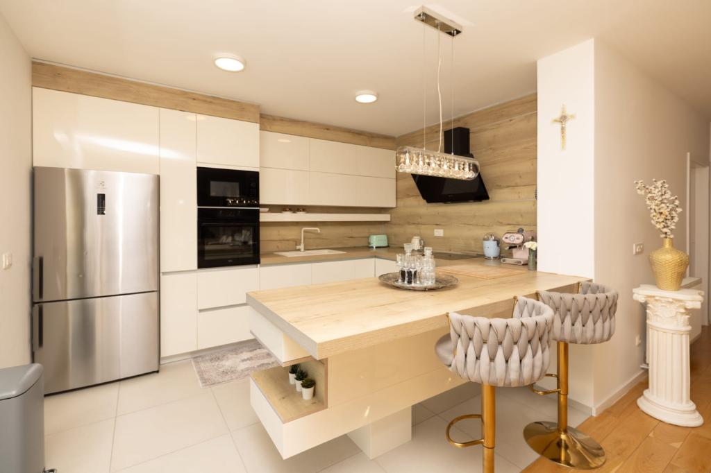 Die Penthäuser Jure und Nikola in Makarska sind luxuriöse und geräumige Apartments mit 135 m² Wohnfläche, ideal für einen komfortablen und erholsamen Aufenthalt. Jedes Apartment verfügt über drei elegant eingerichtete Schlafzimmer, zwei modern ausgestattete Badezimmer, eine Garage und eine große Terrasse mit spektakulärem Blick auf das Meer und die Stadt – perfekt zum Entspannen und Genießen. In ruhiger Lage, 2 km vom Stadtzentrum und 1 km vom Meer entfernt, bieten sie die ideale Kombination aus Privatsphäre und der Nähe zu allen Annehmlichkeiten.