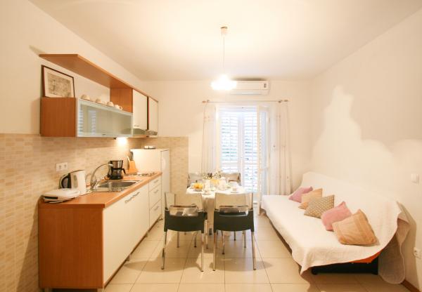 Familienhaus mit Ferienwohnungen befindet sich in einem ruhigen Wohnviertel von Makarska, in der Nähe der Sandstrand und das Hotel Dalmatien und Biokovka. Entfernung vom Stadtzentrum ist 10 min Spaziergänge am Meer.