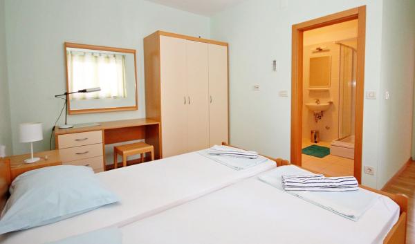 Die Apartments Mikulić befinden sich in zwei Familienhäusern, umgeben von einem großen Garten und alten Olivenbäumen. Sie sind 100 m vom Meer und den Stränden und 800 m vom Stadtzentrum entfernt. In unmittelbarer Nähe befinden sich ein Supermarkt, Cafés, Restaurants und eine Tauchschule. Wir haben für alle unsere Gäste gesicherte Parkplätze. Im ersten Stock befinden sich 2 Bava A4+2-Apartments, die miteinander verbunden werden können.
