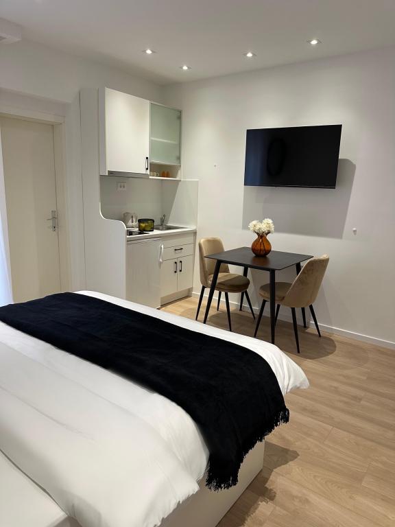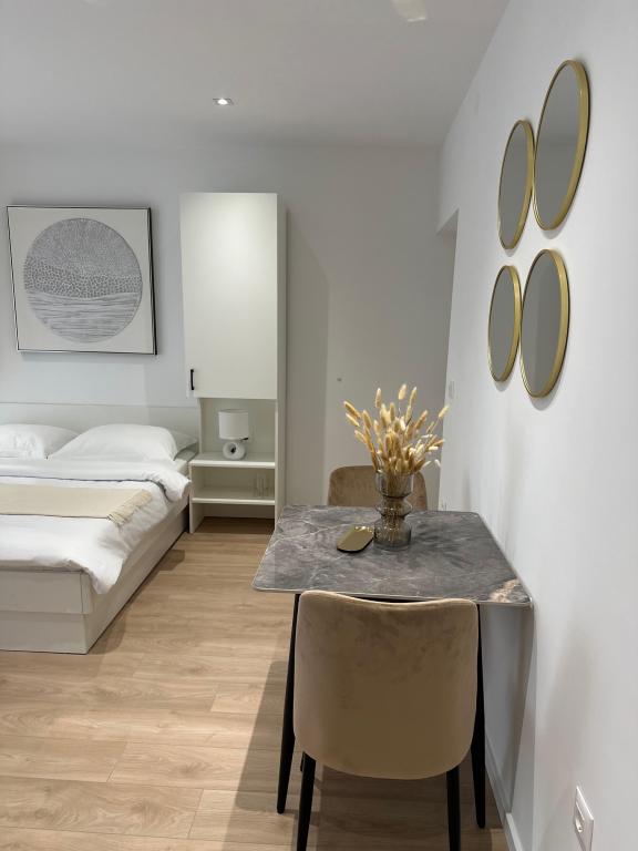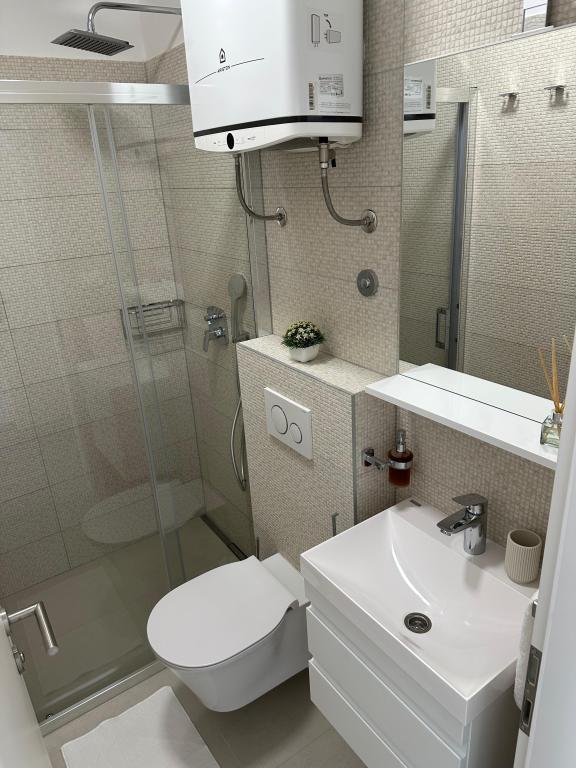 Die komplett renovierten Apartments Olga 1 befinden sich in Makarska, im Viertel „Plaža“, nur 50 Meter vom Meer und Strand entfernt. Wir bieten drei Apartments im ersten Stock des Hauses sowie ein Apartment für vier Personen im Erdgeschoss an. Alle Apartments verfügen über Klimaanlage, ein eigenes Bad, eine voll ausgestattete Küche, Smart-TV/Sat-TV, WLAN und einen Balkon. Private Parkplätze stehen im Hof vor dem Haus zur Verfügung. Der nächste Supermarkt ist 100 Meter entfernt, Restaurants und Cafés befinden sich in 50 Metern Entfernung direkt am Strand. Das Stadtzentrum erreichen Sie in 5 Gehminuten. Die Apartments liegen in einer ruhigen und friedlichen Umgebung.