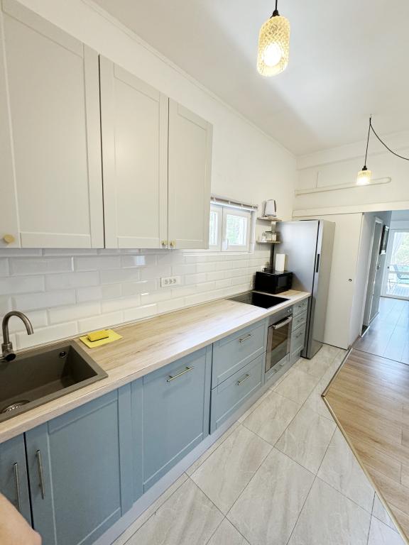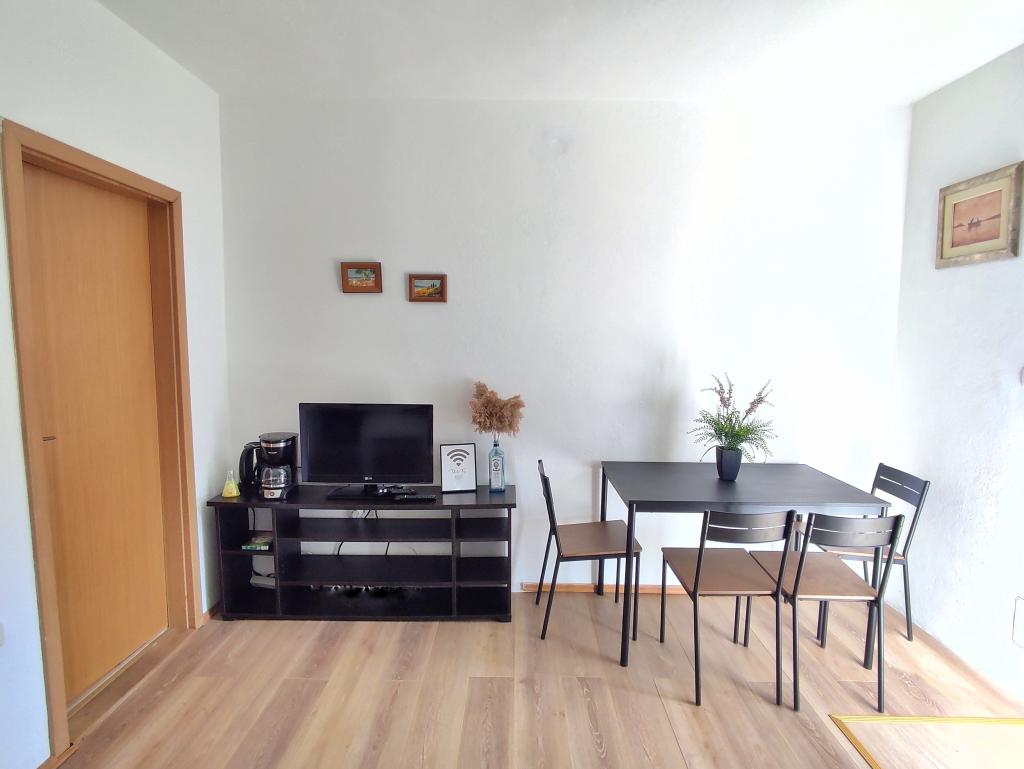 Ferienwohnung für 4 Personen - die Sauberkeit der Wohnung ist mangelhaft (bei unserer Ankunft war der Boden nicht richtig gefegt und gewischt, wir mussten ihn bei der Ankunft selbst fegen), die Abflüsse im Badezimmer sind verstopft (das Wasser läuft in Dusche und Waschbecken nur sehr schlecht ab oder steht einfach nur da), Der Staub ist nicht vom Küchentisch und Fernsehtisch gewischt, auf den Lampen hängen Spinnweben und eine der drei Glühbirnen fehlt, aber da es kein Fenster gibt, reicht das nicht. Licht - es gibt kein Warmwasser in der Küche - der Geruch im Schlafzimmer ist schlecht - wenn man sich auf das Bett legt, riecht es alt und muffig - das Bett im Schlafzimmer ist sehr unbequem und zu weich, da es nur eine doppelte Matratzenauflage statt einer Yogamatte hat - im Schlafzimmer gibt es ein altes Fenster, durch das es ein wenig weht und man den ganzen Lärm von der Straße hört - es gibt draußen einen "Ständer" für Wäsche, aber es gibt nicht genug Haken - wir mussten sie selbst kaufen, damit wir Handtücher aufhängen konnten - absolut nicht genug Kochutensilien - man kann nicht einmal Pfannkuchen für ein Kind backen Positive Dinge: - Der Parkplatz befindet sich vor der Wohnung und ist überdacht - geräumige Wohnung - Nähe zum Strand, Bäckerei - Toilettenpapier, Handtücher, Bettwäsche sind vorhanden - die Wohnungseigentümer sind sehr freundlich *die Nachbarwohnung für 6 Personen ist ganz anders...besser ausgestattet