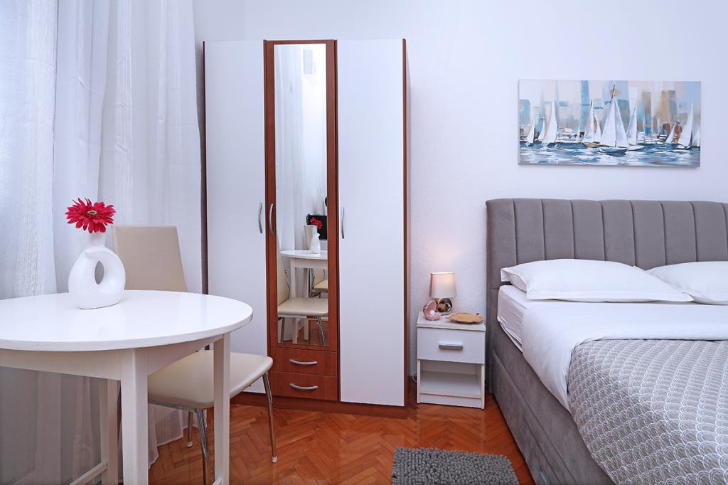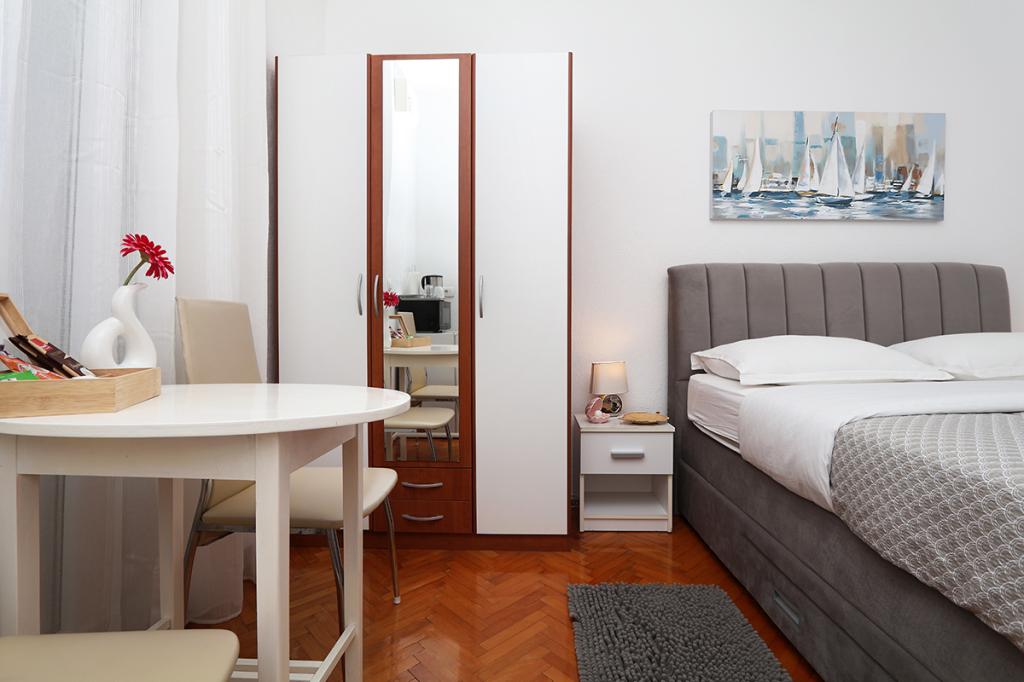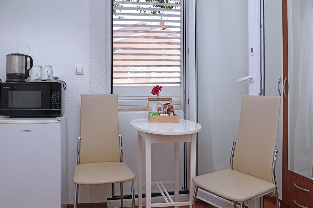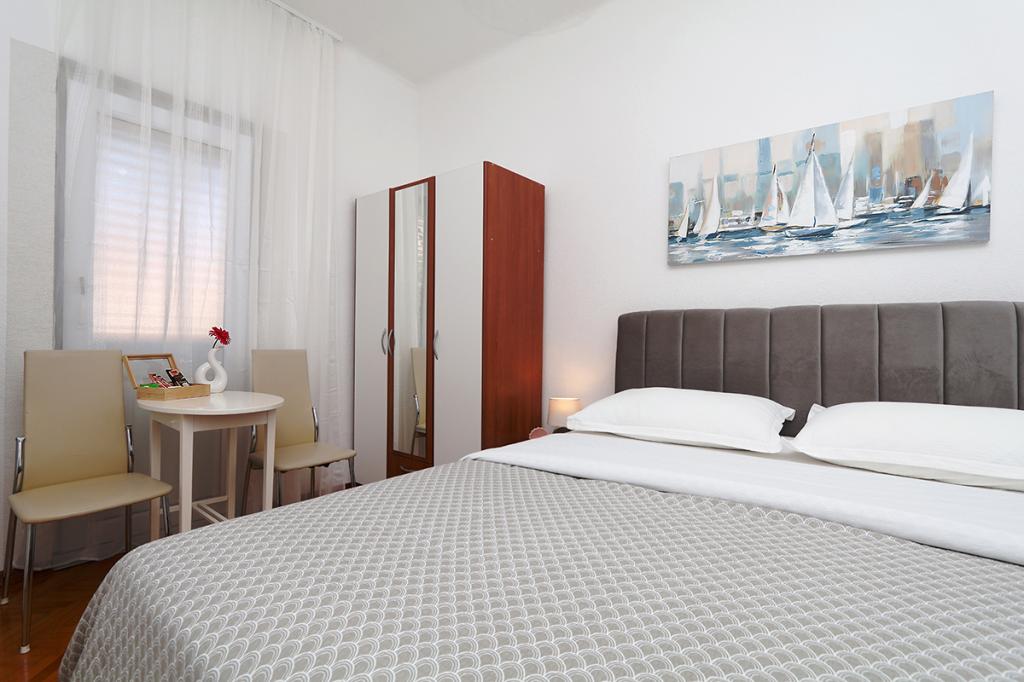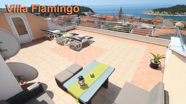 Die Apartments und Zimmer der Villa Flamingo befinden sich im Stadtzentrum, abseits der Hauptstraße, in einer ruhigen Umgebung mit großem Garten und Parkplatz. Alles befindet sich im Stadtzentrum, die Apartments liegen 100 m vom Hauptplatz, 300 m von der Uferpromenade und 500 m vom Strand entfernt. Die Apartments liegen abseits der Hauptstraße, sodass wir einen ruhigen und erholsamen Urlaub garantieren. Vor dem Haus, im Garten, haben wir eine große Feuerstelle, an der Sie Grillgerichte zubereiten und im schönen Ambiente unseres Gartens zu Abend essen können. Vom Balkon aus bietet sich ein Blick auf das Meer und den Stadthafen sowie die Inseln Brač und Hvar. Alle Apartments sind klimatisiert und mit Sat-TV und WLAN-Internet ausgestattet. Nach Absprache mit den Gästen organisieren wir den Transport vom Flughafen zum Apartment. Die Apartments verfügen über einen WLAN-Internetzugang. Ganz oben im Haus befindet sich eine große Terrasse mit herrlichem Blick auf das Meer und die Stadt, die allen Gästen zur Verfügung steht. Es besteht die Möglichkeit, Frühstück, Mittag- und Abendessen in einem nahegelegenen Restaurant zu organisieren.