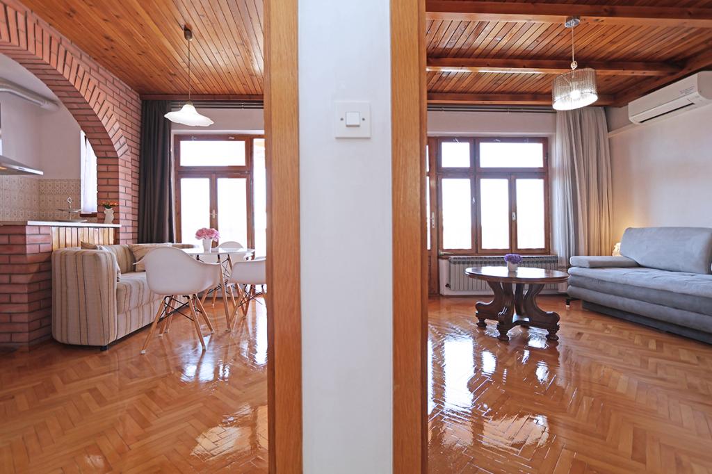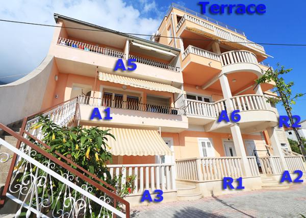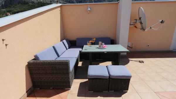 Fantastische Wohnungen, zwei große Bäder und drei Schlafzimmer mit schönen privaten Terrasse mit Blick auf den gepflegten Garten und Grillplatz. Unglaublich gastfreundliche Gastgeber - Besitzer waren sehr freundlich, warm und freundlich und immer begrüßte uns am Morgen, um zu sehen, wenn die Dinge in Ordnung waren. Wir waren sehr glücklich, eine Nacht mit der Besitzer Verkostung lokaler Grappa, während über die Geschichte und Kroatien aus erster Hand hören, zu verbringen. Tolle Lage, 10 Minuten zu Fuß zum Strand, 5 min zum Hauptzentrum mit Supermärkten und vielen Geldautomaten und 5 Gehminuten zur Bushaltestelle, wenn Sie von Dubrovnik oder Split kommen. Auf der Oberseite des guten Service und Lage, es gab eine unglaubliche Dachbalkonterrasse mit atemberaubendem Blick auf Makarska und die Inseln, würde ich eine der besten in der Stadt zu sagen.