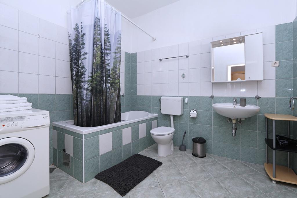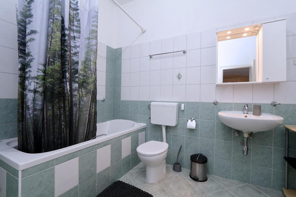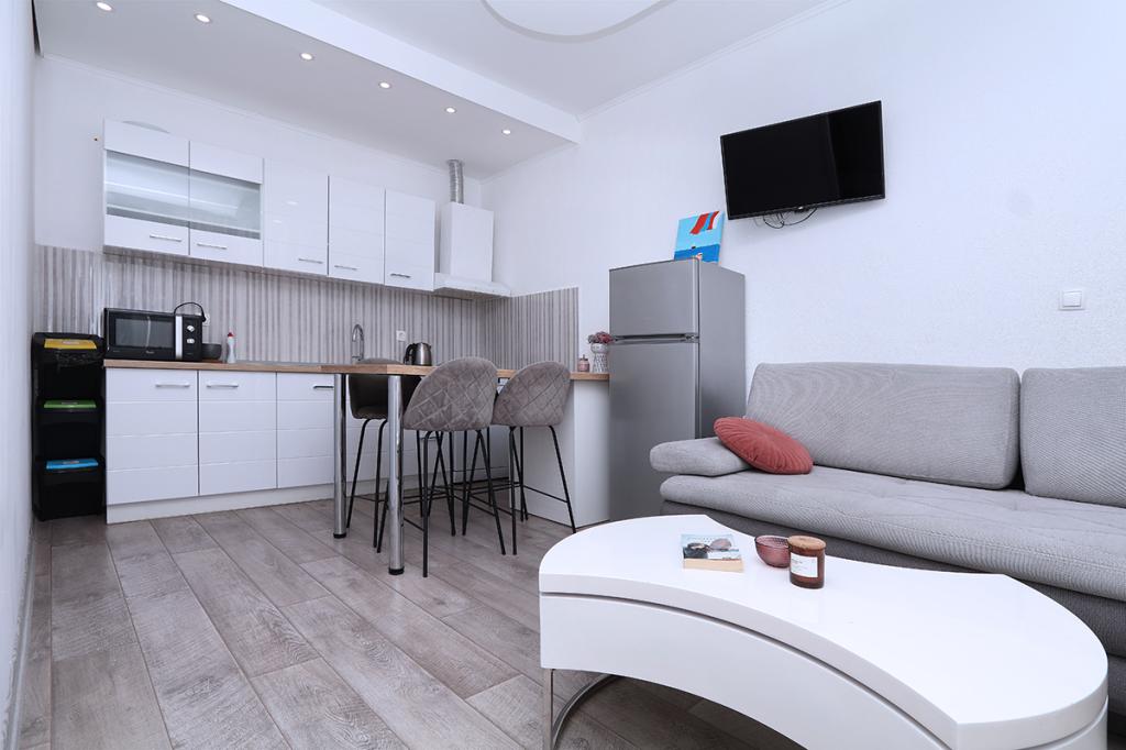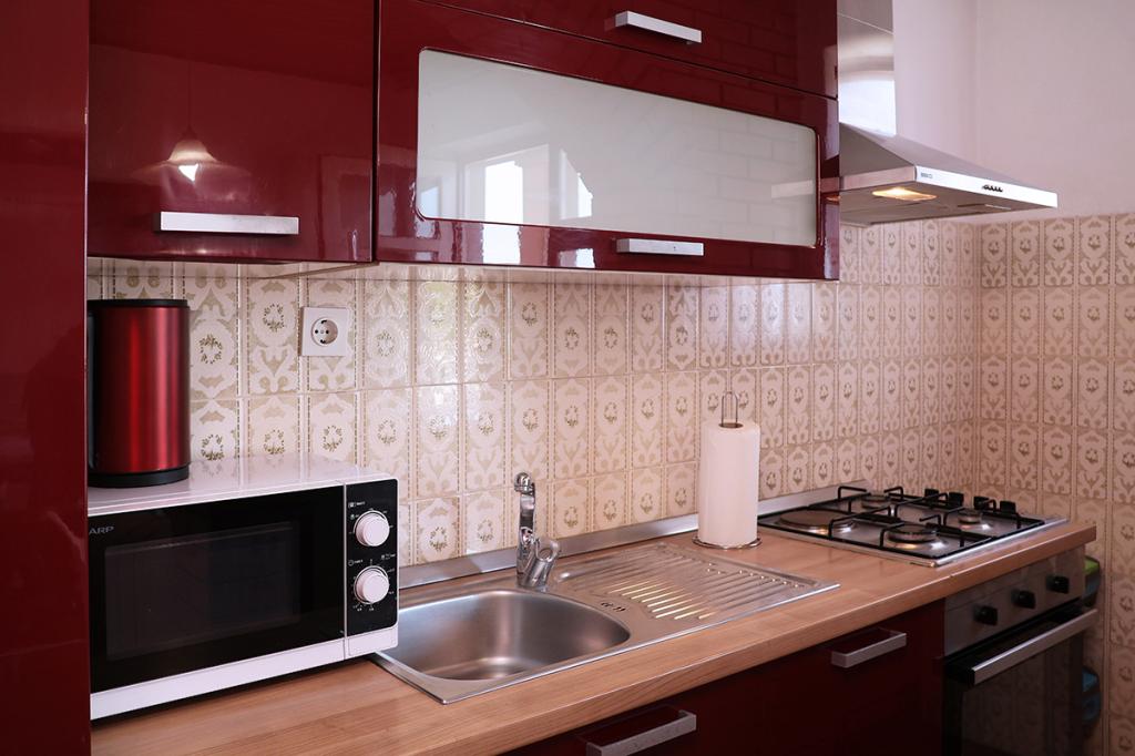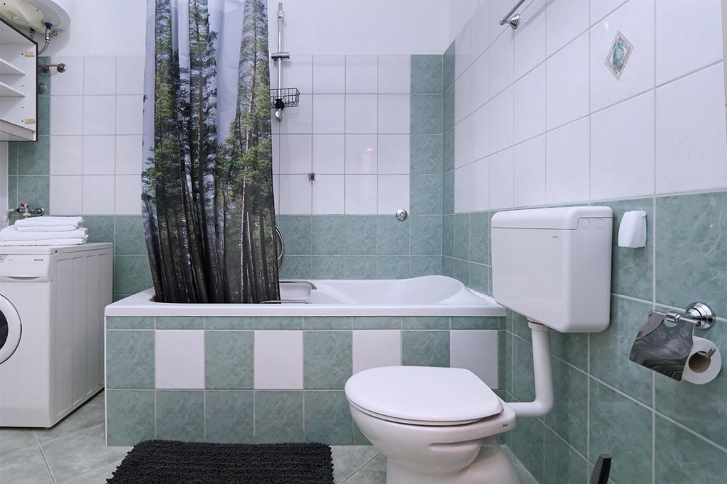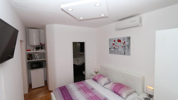 Die Unterkunft war für unsere Familie (2 Erwachsene und ein 16-jährigen Sohn) sehr bequem, groß genug und gut ausgestattet. Die Küche ist modern und beinhaltet alles Nötige (Herd, Mikrowelle, Wasserkocher, Spüle und Geschirr), diese dient direkt als Wohnzimmer mit einem großen Raum und gleichzeitig eine Schlafecke für unseren Großen. Das Schlafzimmer ist als eigenes Zimmer zur Verfügung gestellt - ergonomisch und kompakt: mit einem Doppelbett und Schrankanlage. Das Schlafzimmer befindet sich auf der Schattenseite der Wohnung und bittet einen kühlen Raum dar. Das Badezimmer ist riesig und ist mit einer großen Badewanne mit Dusche ausgestattet. Dort steht eine voll funktionsfähige Waschmaschine, sogar ein Fön ist vorhanden. Nur ein Mängel haben wir leider festgestellt: die Klimaanlage funktioniert nicht richtig. Diese befindet sich im Flurbereich und sollte die komplette Wohnung kühlen, tut nur ventilieren. Die Wohnung verfügt über eigene Terrasse, die wunderschön ist. Im Wohnkomplex auf der oberen Ebene gibt es eine große Terrasse für alle Gäste, die eine tolle Aussicht auf das Meer, die Altstadt und die Stadt insgesamt bietet. Einfach sehr praktisch für die Sonnenuntergänge zu bewundern. Wir sind das 5. Mal in Makarska im Urlaub und können somit mit früheren Unterkünften vergleichen: das war eine TOP-Wohnung mit sehr freundlichen Gastgebern und einer schönen zentralen Lage im Herzen der Altstadt.