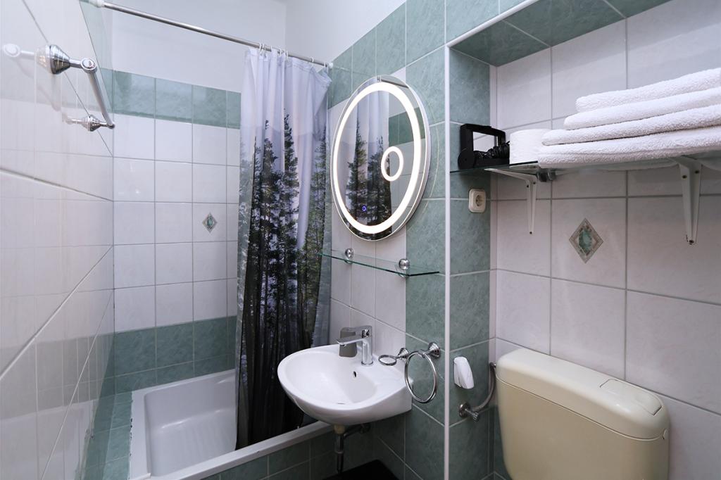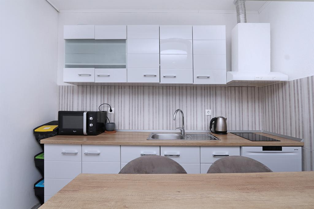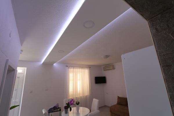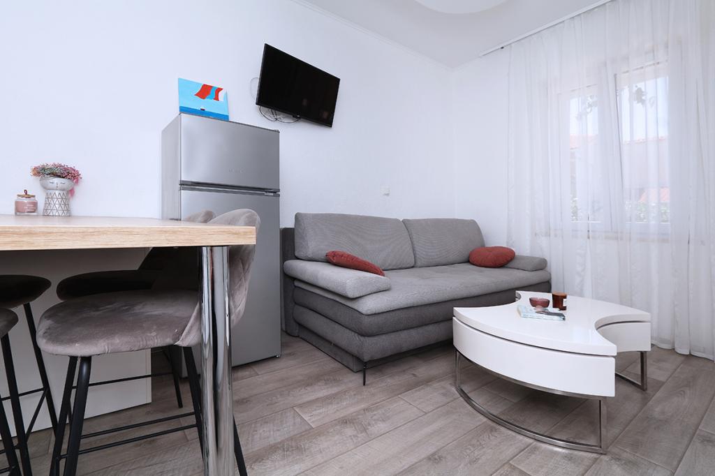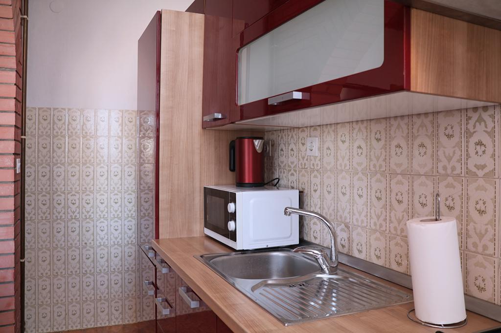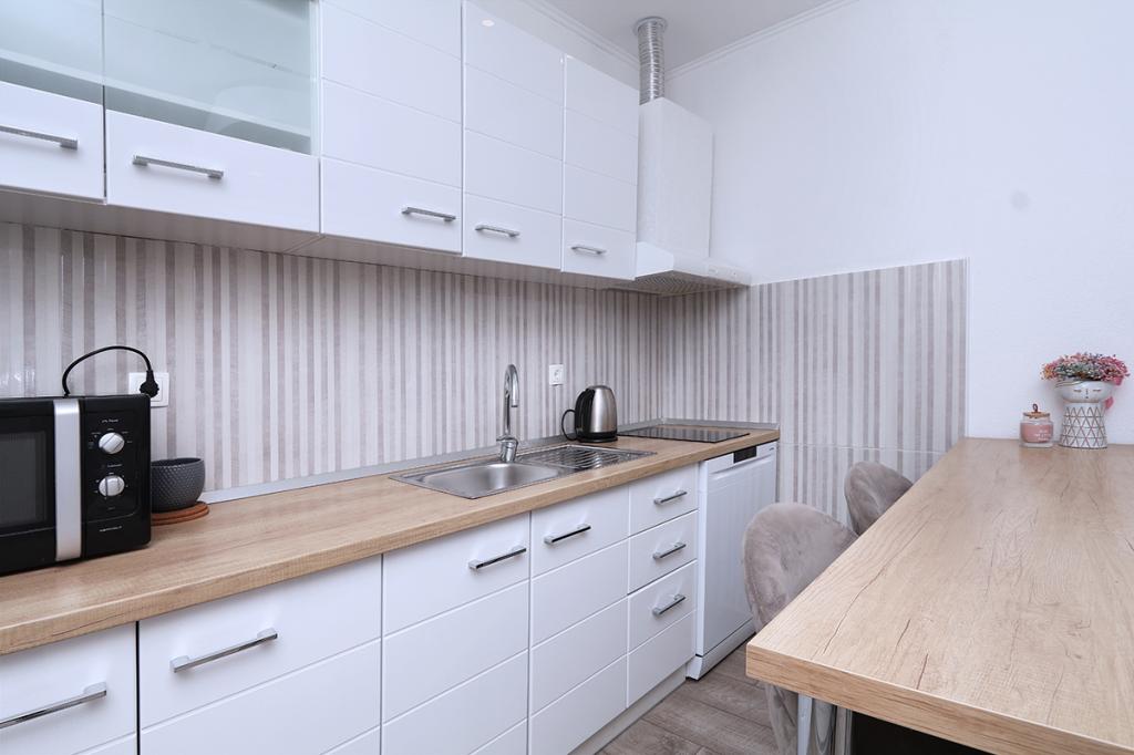 Die Unterkunft war für unsere Familie (2 Erwachsene und ein 16-jährigen Sohn) sehr bequem, groß genug und gut ausgestattet. Die Küche ist modern und beinhaltet alles Nötige (Herd, Mikrowelle, Wasserkocher, Spüle und Geschirr), diese dient direkt als Wohnzimmer mit einem großen Raum und gleichzeitig eine Schlafecke für unseren Großen. Das Schlafzimmer ist als eigenes Zimmer zur Verfügung gestellt - ergonomisch und kompakt: mit einem Doppelbett und Schrankanlage. Das Schlafzimmer befindet sich auf der Schattenseite der Wohnung und bittet einen kühlen Raum dar. Das Badezimmer ist riesig und ist mit einer großen Badewanne mit Dusche ausgestattet. Dort steht eine voll funktionsfähige Waschmaschine, sogar ein Fön ist vorhanden. Nur ein Mängel haben wir leider festgestellt: die Klimaanlage funktioniert nicht richtig. Diese befindet sich im Flurbereich und sollte die komplette Wohnung kühlen, tut nur ventilieren. Die Wohnung verfügt über eigene Terrasse, die wunderschön ist. Im Wohnkomplex auf der oberen Ebene gibt es eine große Terrasse für alle Gäste, die eine tolle Aussicht auf das Meer, die Altstadt und die Stadt insgesamt bietet. Einfach sehr praktisch für die Sonnenuntergänge zu bewundern. Wir sind das 5. Mal in Makarska im Urlaub und können somit mit früheren Unterkünften vergleichen: das war eine TOP-Wohnung mit sehr freundlichen Gastgebern und einer schönen zentralen Lage im Herzen der Altstadt.