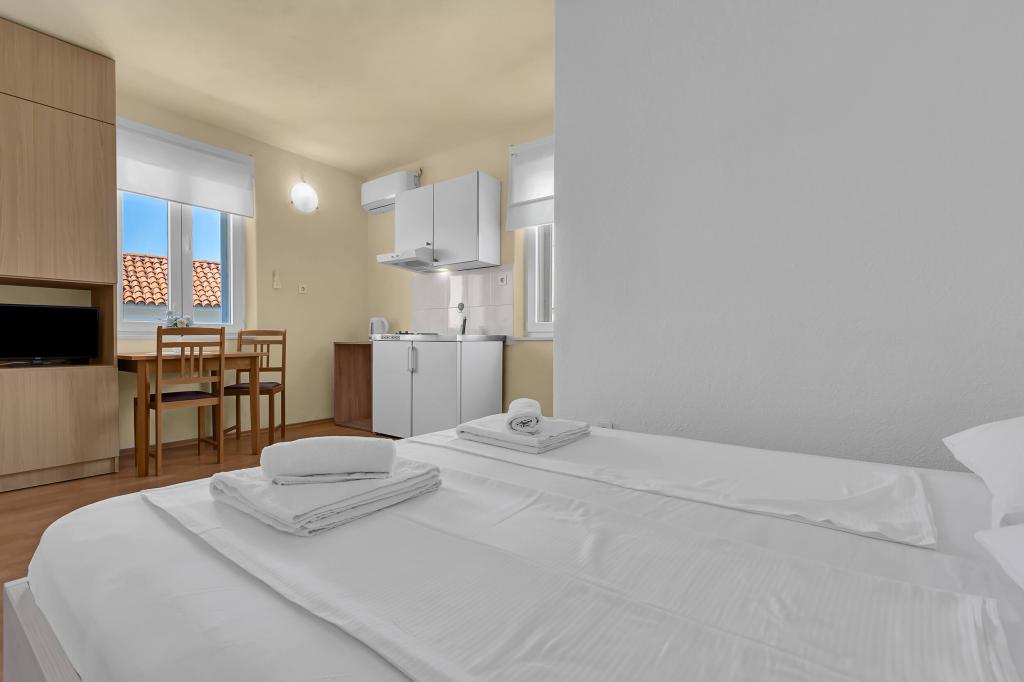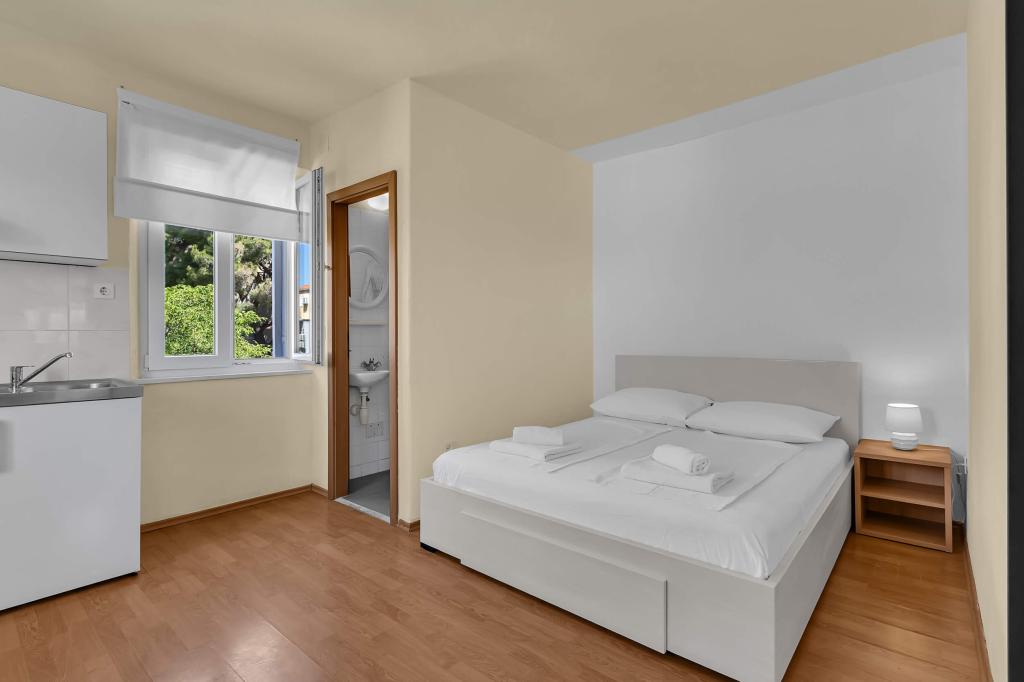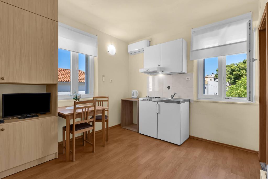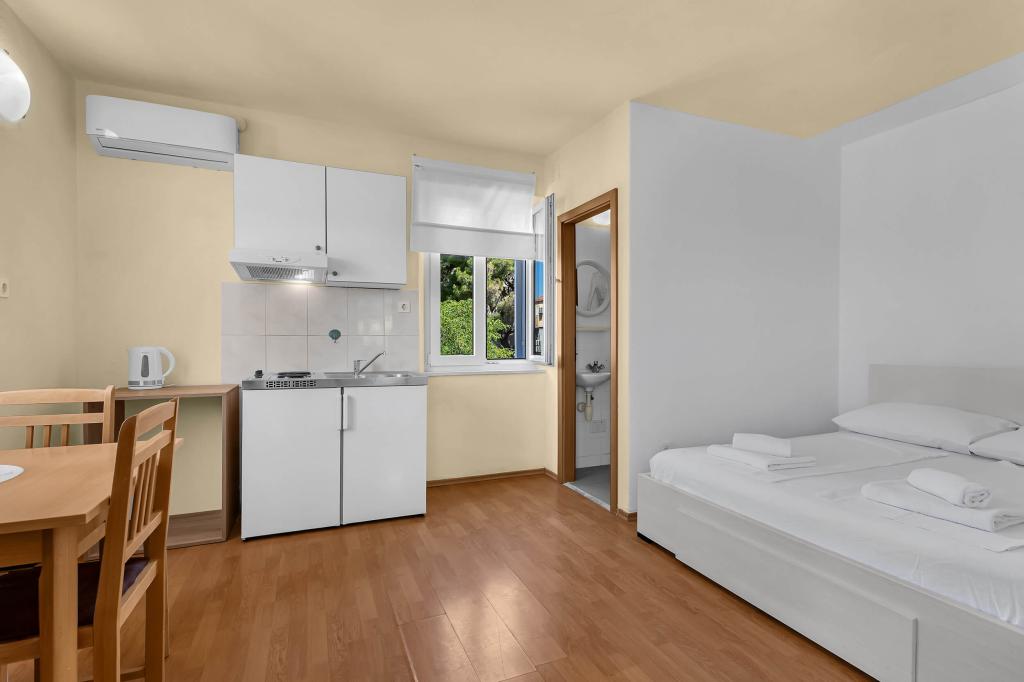 Haus mit 4 Studio-Apartments. In der Nähe aller wichtigen Einrichtungen gelegen, Hauptplatz 300 m, Markt 300 m, Strand 700 m, Hauptpromenade (Riva 350 m).