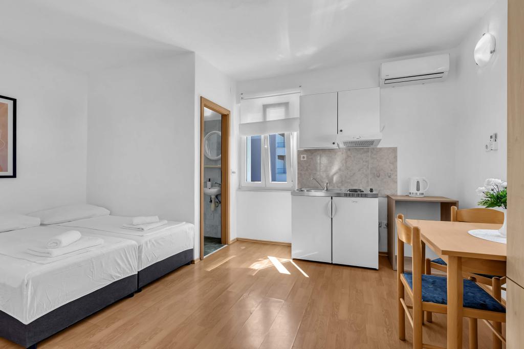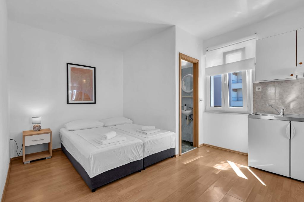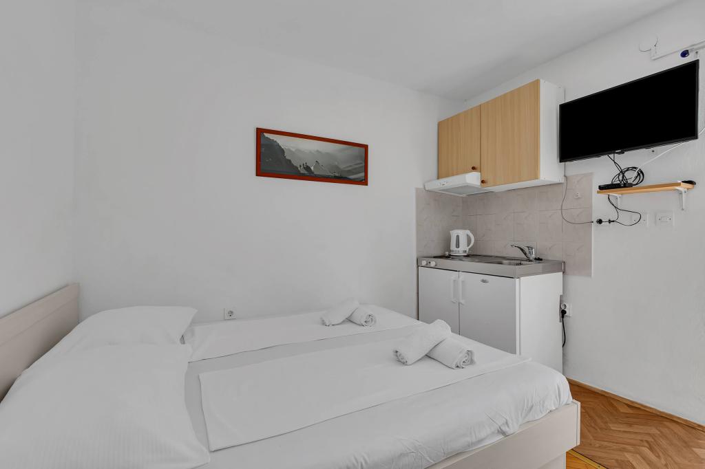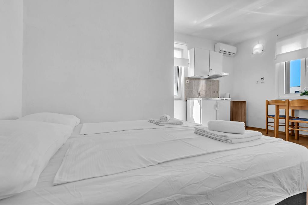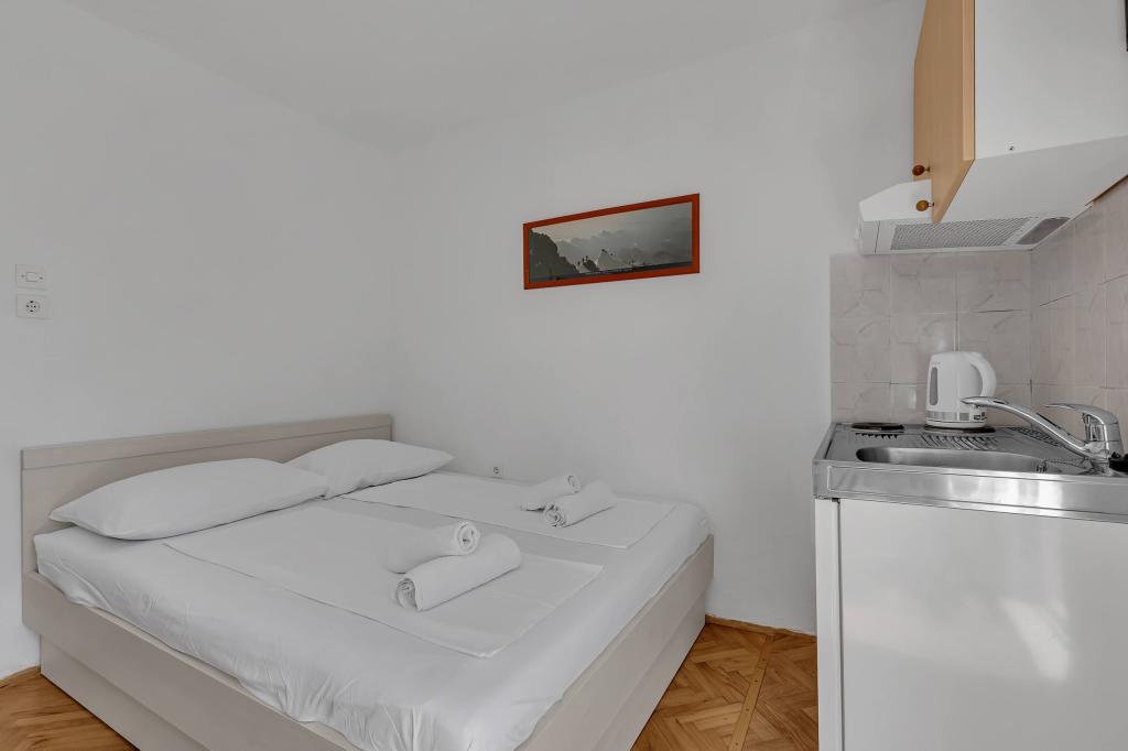 Haus mit 4 Studio-Apartments. In der Nähe aller wichtigen Einrichtungen gelegen, Hauptplatz 300 m, Markt 300 m, Strand 700 m, Hauptpromenade (Riva 350 m).