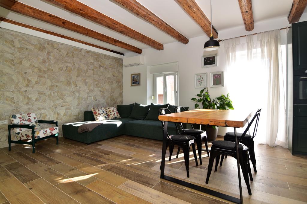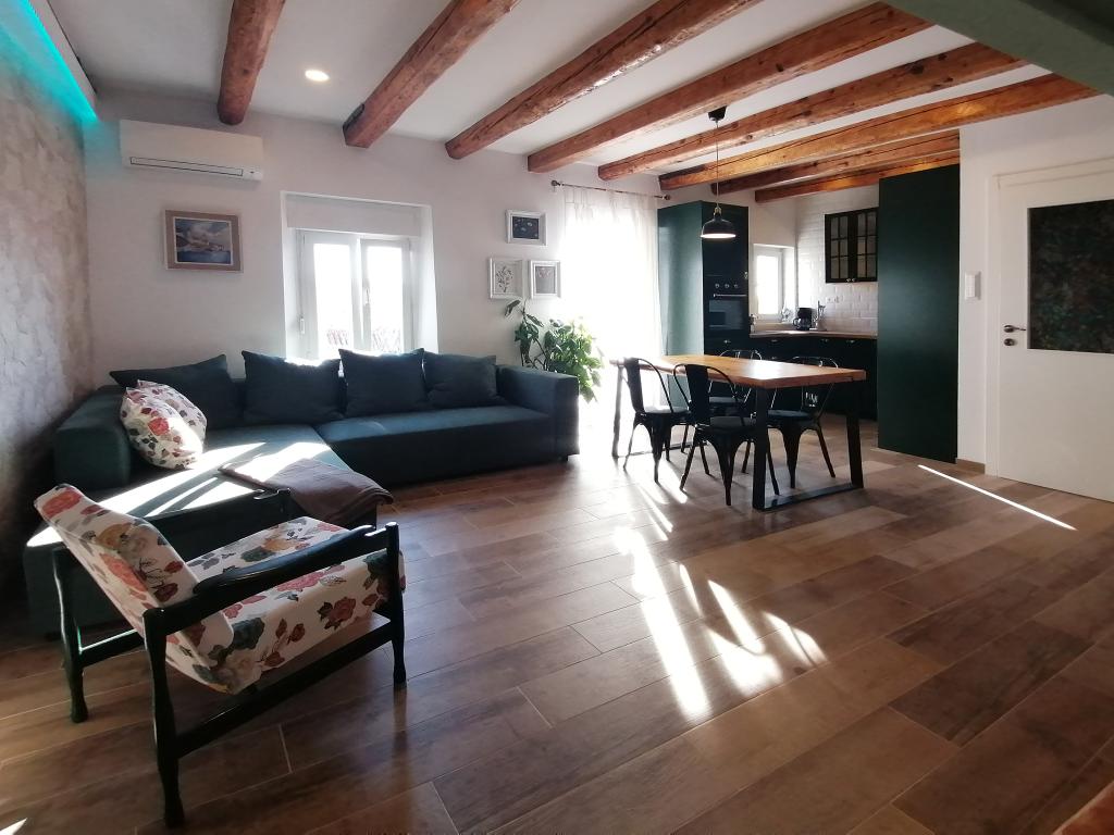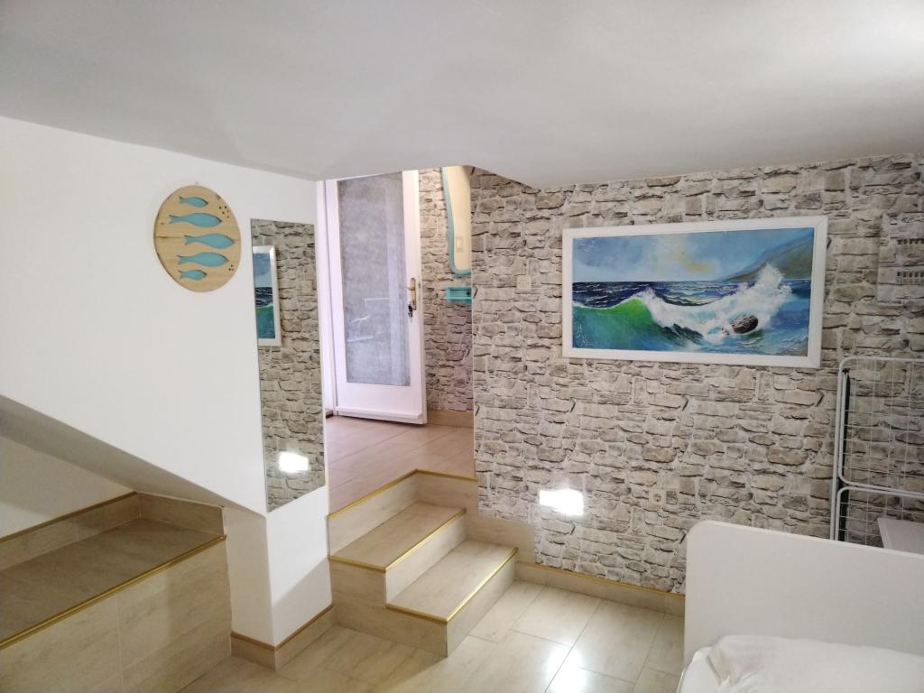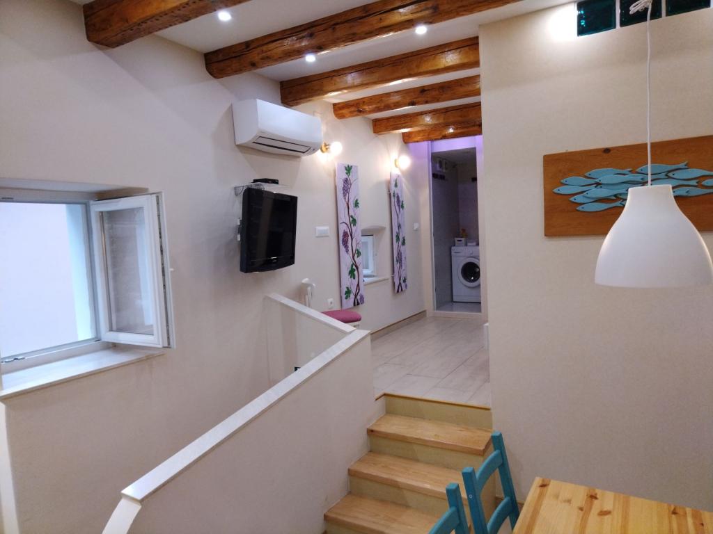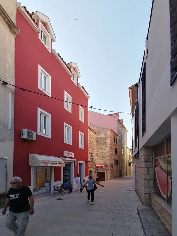 Das Familienhaus liegt im Zentrum von Makarska. In unmittelbarer Nähe befinden sich der Hauptplatz der Stadt, die Kirche, der Markt, Geschäfte und Restaurants. Die Uferpromenade ist 50 m entfernt. Im Haus befinden sich zwei Wohnungen, eine im Erdgeschoss und die andere im zweiten Stock des Hauses. Die Wohnung im Erdgeschoss hat einen eigenen Eingang von der ruhigen Straßenseite, besteht aus zwei Doppelzimmern, einer Küche und einem Badezimmer. Alles ist ein moderner offener Raum, ohne Türen zu den Zimmern, auf zwei Ebenen, die durch eine Reihe von Treppen verbunden sind. Ein Zimmer befindet sich auf der unteren Ebene, das andere Zimmer, die Küche und das Badezimmer befinden sich auf der oberen Ebene. Die Küche ist komplett mit allen notwendigen Kochutensilien ausgestattet. Die Wohnung wurde komplett renoviert und alles ist neu. Die zweite Wohnung befindet sich im zweiten Stock mit herrlichem Blick auf die Uferpromenade und das Meer. Auch diese Wohnung wurde vor zwei Jahren komplett renoviert und alles ist neu und modern. Es umfasst 75m2. Es verfügt über zwei Doppelzimmer, ein großes Wohnzimmer, eine Küche, ein Badezimmer und einen Balkon. Alle Zimmer sind klimatisiert