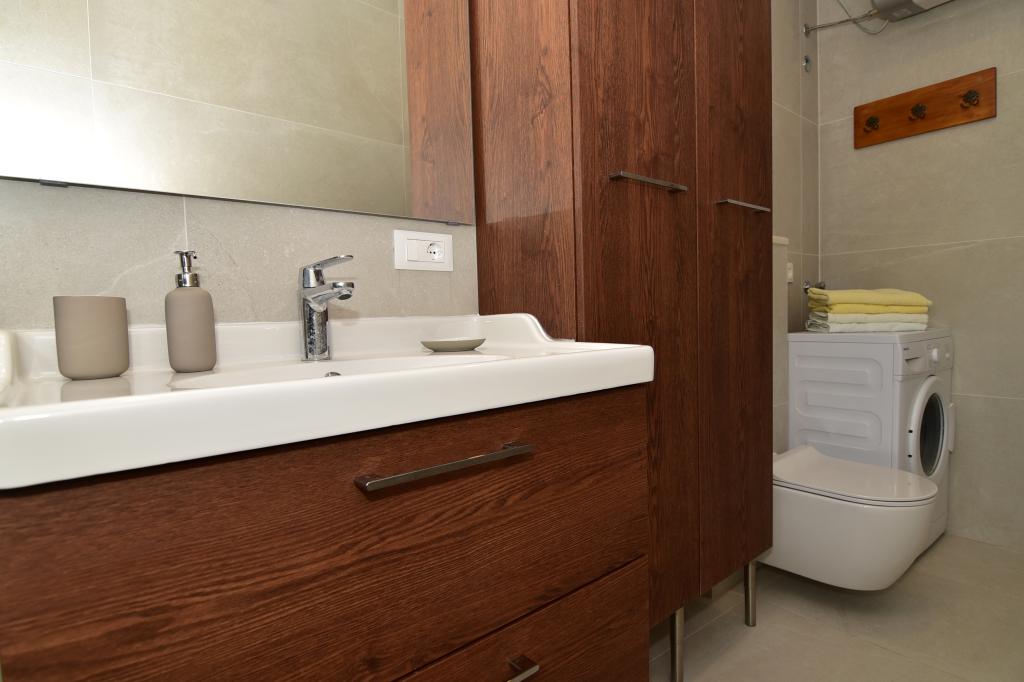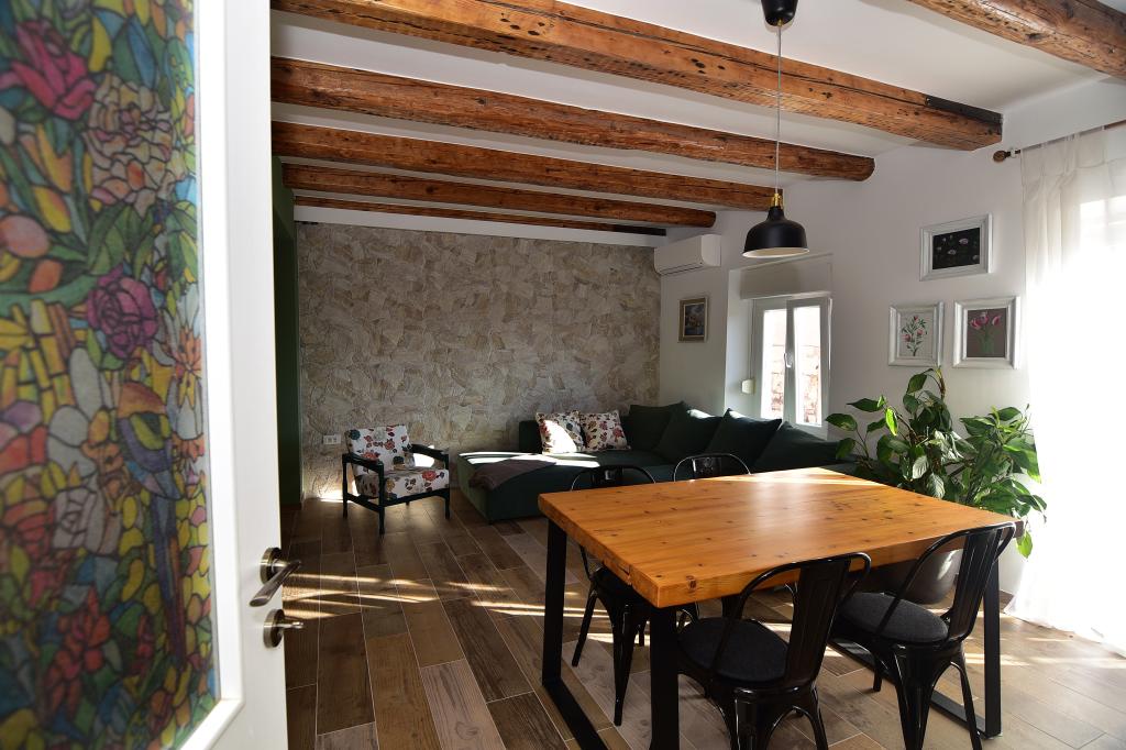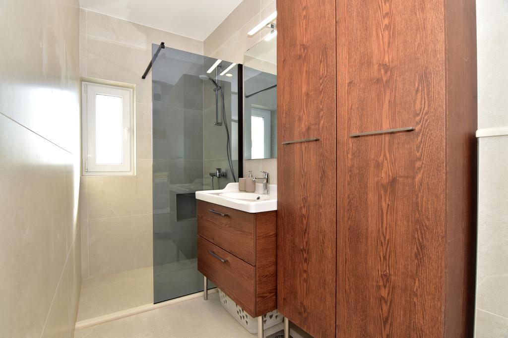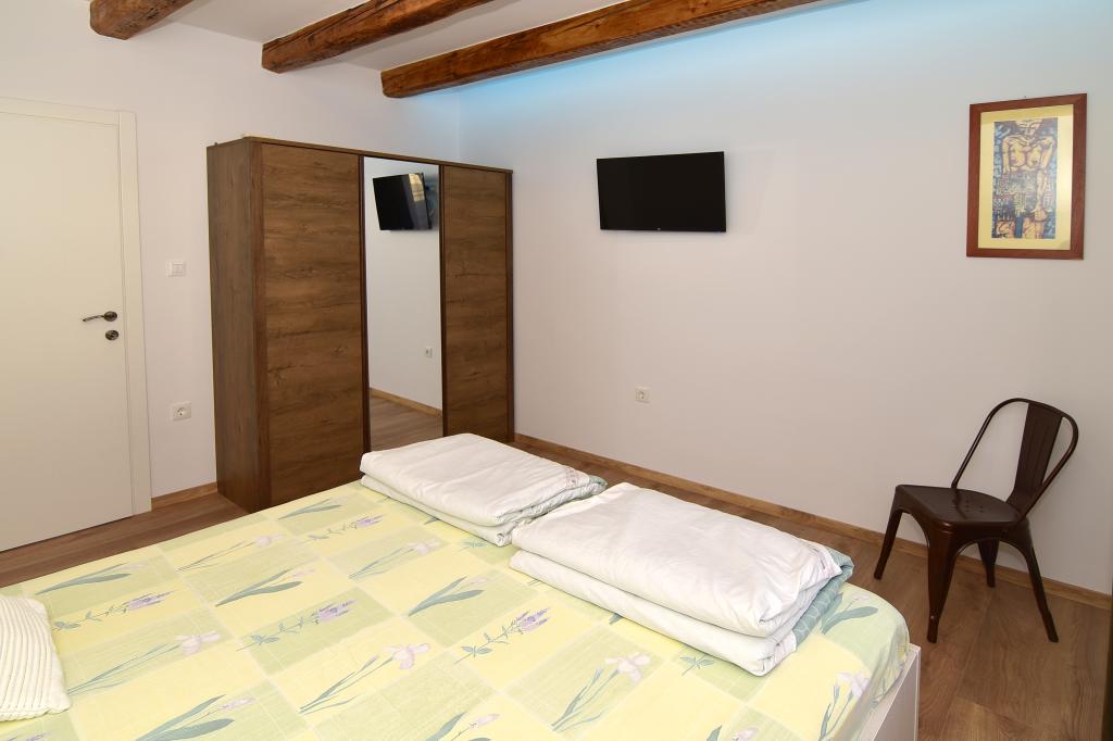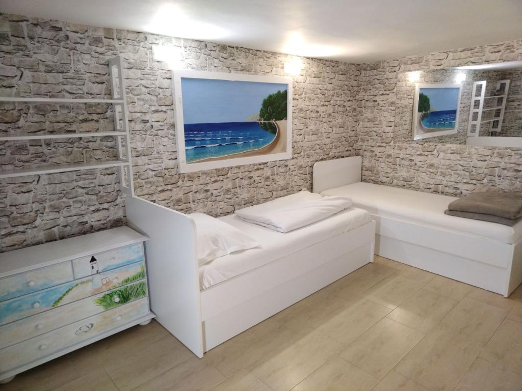 Das Familienhaus liegt im Zentrum von Makarska. In unmittelbarer Nähe befinden sich der Hauptplatz der Stadt, die Kirche, der Markt, Geschäfte und Restaurants. Die Uferpromenade ist 50 m entfernt. Im Haus befinden sich zwei Wohnungen, eine im Erdgeschoss und die andere im zweiten Stock des Hauses. Die Wohnung im Erdgeschoss hat einen eigenen Eingang von der ruhigen Straßenseite, besteht aus zwei Doppelzimmern, einer Küche und einem Badezimmer. Alles ist ein moderner offener Raum, ohne Türen zu den Zimmern, auf zwei Ebenen, die durch eine Reihe von Treppen verbunden sind. Ein Zimmer befindet sich auf der unteren Ebene, das andere Zimmer, die Küche und das Badezimmer befinden sich auf der oberen Ebene. Die Küche ist komplett mit allen notwendigen Kochutensilien ausgestattet. Die Wohnung wurde komplett renoviert und alles ist neu. Die zweite Wohnung befindet sich im zweiten Stock mit herrlichem Blick auf die Uferpromenade und das Meer. Auch diese Wohnung wurde vor zwei Jahren komplett renoviert und alles ist neu und modern. Es umfasst 75m2. Es verfügt über zwei Doppelzimmer, ein großes Wohnzimmer, eine Küche, ein Badezimmer und einen Balkon. Alle Zimmer sind klimatisiert
