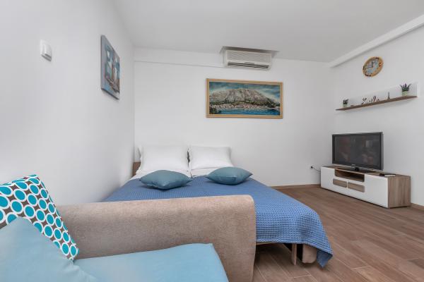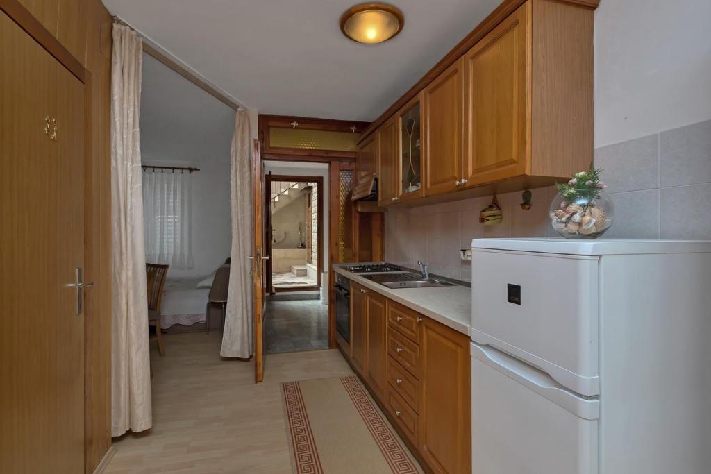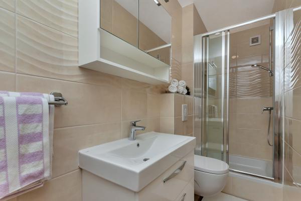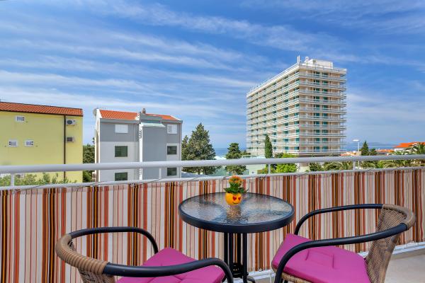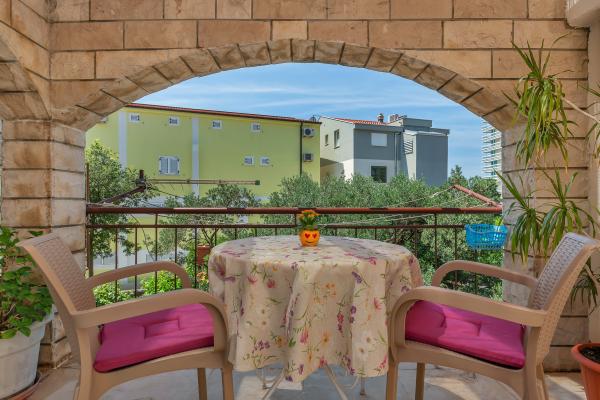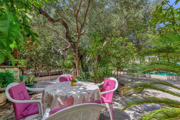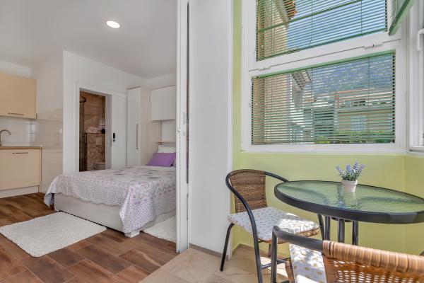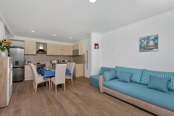 Nur eine Minute Fußweg zum Strand! Das erste Apartment, das „4+2 Apartment“ (ID: 58865), bietet Platz für 4 Personen mit der Möglichkeit eines Zustellbetts für zwei weitere Personen. Es verfügt über eine Gesamtfläche von 85 m² mit zwei Schlafzimmern, einem großen Wohnzimmer mit Küche, zwei Badezimmern und einem zusätzlichen WC. Das Apartment hat einen eigenen Balkon mit Meerblick. Das zweite Apartment, das Studio „Up!“ (ID: 58866), befindet sich auf derselben Etage und bietet Platz für zwei Personen mit einer privaten Terrasse für zwei Personen. Das dritte Apartment, das „3+2 Apartment“ (ID: 63762), bietet auf 65 m² im Erdgeschoss Platz für bis zu 5 Personen. Ebenfalls im Erdgeschoss befindet sich das Studio „Olive Tree“ (ID: 65589) für zwei Personen.