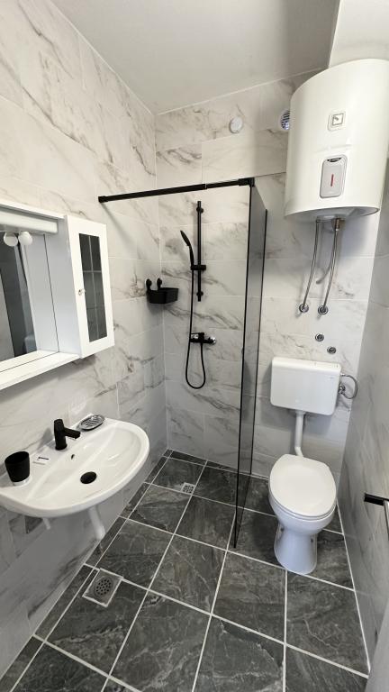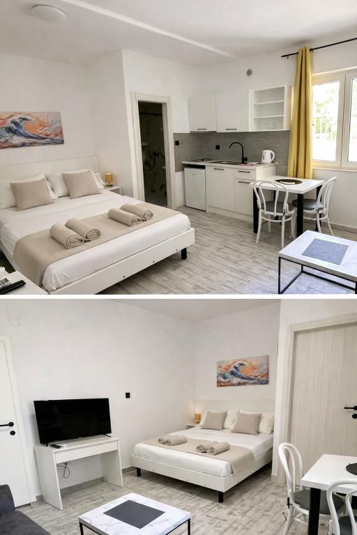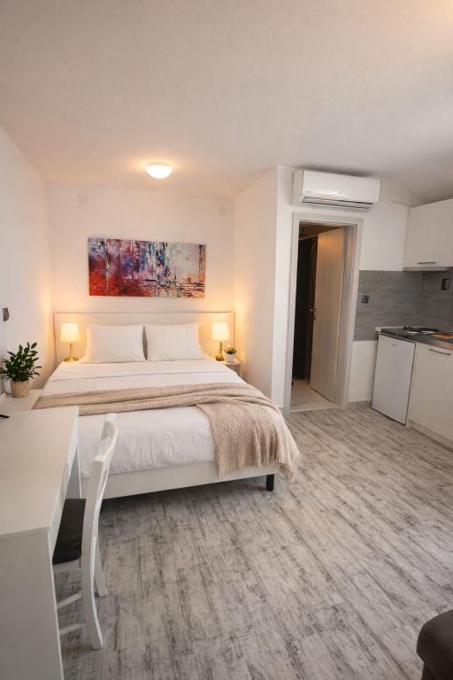 Die Villa Dalmacija liegt in Makarska, nur 2 Gehminuten vom Strand entfernt und verfügt über einen kostenlosen Parkplatz. Alle Studios und Apartments verfügen über eine Klimaanlage, eine kleine Küche mit Herd und Grundausstattung, einen kleinen Kühlschrank, ein eigenes Bad und Sat-TV. Studio 2+1: ein Studio mit französischem Bett und Schlafsofa für 1 Person, Balkon (das Studio im ersten Stock hat keinen Balkon). Studio 3+1: ein Schlafzimmer mit französischem Bett und ausziehbarem Sofa für 1 bis 2 Personen, geschlossener Dachboden, Hochparterre. Apartment 2+2: Schlafzimmer mit Doppelbett und Wohnzimmer mit Schlafsofa für 2 Personen, Terrasse. Die Wohnungen befinden sich im Hochparterre, im 2. oder 3. Stock. WLAN und Parkplätze sind kostenlos.