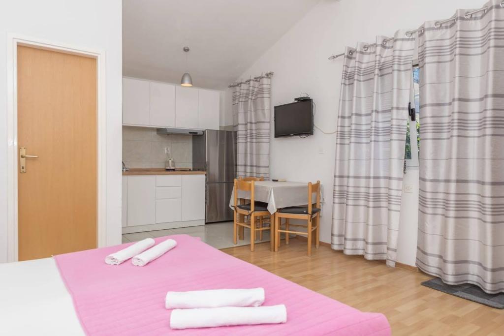 Die Apartments liegen 150 m vom Strand und Restaurants, 500 m vom Zentrum entfernt und verfügen über einen privaten Parkplatz pro Auto, Klimaanlage, WLAN, TV, eine Terrasse mit Meerblick und einen Rabatt von 20 m². Wir bieten verschiedene Apartments an: Studios mit 2+1 Schlafzimmern, Studios mit 2+2 Schlafzimmern und Apartments mit einem Schlafzimmer mit 3+2 Schlafzimmern. Für weitere Informationen kontaktieren Sie bitte den Vermieter. Vielen Dank, Andrea Roso.
