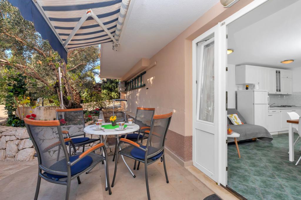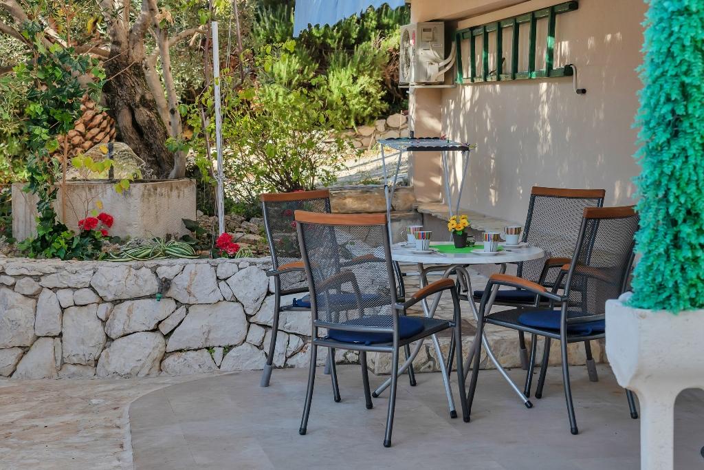 Die Villa Miranda befindet sich am Ortseingang von Makarska bei Split, in der ersten Straße zur Hauptstraße. Obwohl in der Stadt Zagrebačka 94, ist es vollständig von autochthonen Natursteinen, Olivenbäumen und hohen Mandelbäumen umgeben, die sich über große Flächen um das Haus verteilen. Alle Apartments und Studios sind klimatisiert und bieten Sat-TV, WLAN, einen großen Parkplatz und einen Grill. Es ist nicht erforderlich, mit den anderen Gästen über den Grill zu verhandeln, da mehrere Grills verfügbar sind. Die Villa ist ein Tourist, der sich auf Ihren ruhigen und komfortablen Aufenthalt konzentriert. Es ist 10 Minuten zu Fuß zu schönen Sandstränden und 15-20 Minuten zu Fuß zum Zentrum von Makarska. Ein paar Schritte entfernt befindet sich die Café-Bar mit begleitenden Annehmlichkeiten, einem Fahrradverleih und einem Roller-Verleih. Nur 5 Minuten zu Fuß ist eine Apotheke, Bäckerei, Supermarkt, Geldautomat. Ganz in der Nähe befindet sich das berühmte Heiligtum von Vepric, bekannt als das kroatische Lourdes, und die Tennisplätze sowie die Diskothek am Strand sind 400 m entfernt. Sie können Ihr Haustier sowie Fahrräder mitbringen