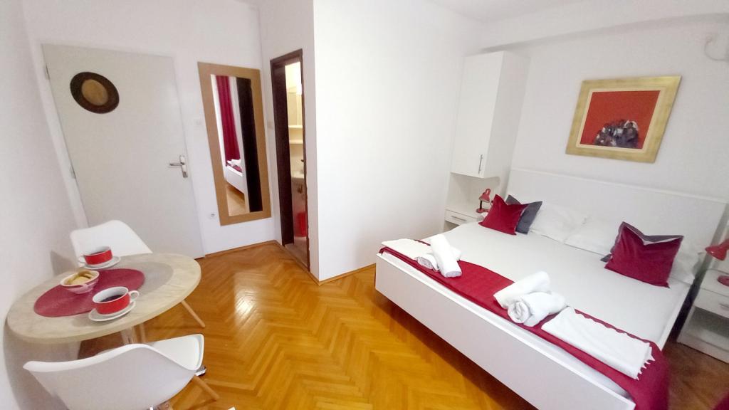 Ausgezeichnete Wohnung und Lage in Makarska, für alle, die Ruhe und Frieden auf See suchen. Frau Miranda ist immer für Sie da und sehr professionell in Bezug auf Buchung, Kommunikation und alle Bedürfnisse, die ein Gast während seines Aufenthalts in Makarska und in ihrer schönen Wohnung benötigt. Sauberes und ordentliches Studio, wie auf den Fotos zu sehen, ohne unangenehme Überraschungen, klimatisierte Zimmer mit Meerblick und dem Geruch von berauschender Kiefer. In der Nähe finden Sie alles, was Sie während Ihres Aufenthalts benötigen: Bäckerei, Markt, Wäscherei, Obst, Wechselstube, Tankstelle, Fahrradverleih oder Roller. Eine herzliche Empfehlung für alle, die Makarska und die Riviera besuchen möchten.