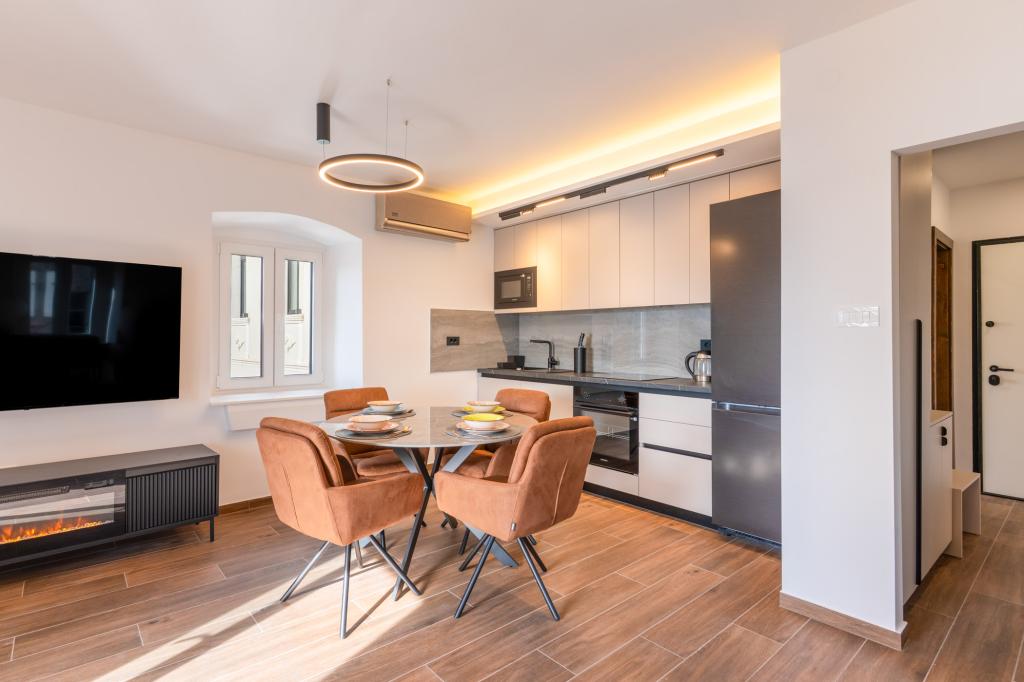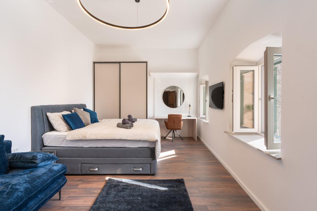 Das Apartment Azzuro liegt mitten in Makarska, direkt am Wasser, und bietet moderne und geräumige Unterkünfte mit Meerblick. Es verfügt über ein Schlafzimmer, ein Badezimmer, eine voll ausgestattete Küche und ein gemütliches Wohnzimmer mit einem kleinen Balkon zum Meer. Dank der hervorragenden Lage sind alle Annehmlichkeiten wie Strände, Restaurants, Cafés und Geschäfte bequem zu Fuß erreichbar. Eine ideale Wahl für Gäste, die mitten im Geschehen sein und die lebendige Atmosphäre von Makarska genießen möchten – mit garantierter Unterstützung durch das Personal während ihres Aufenthalts.