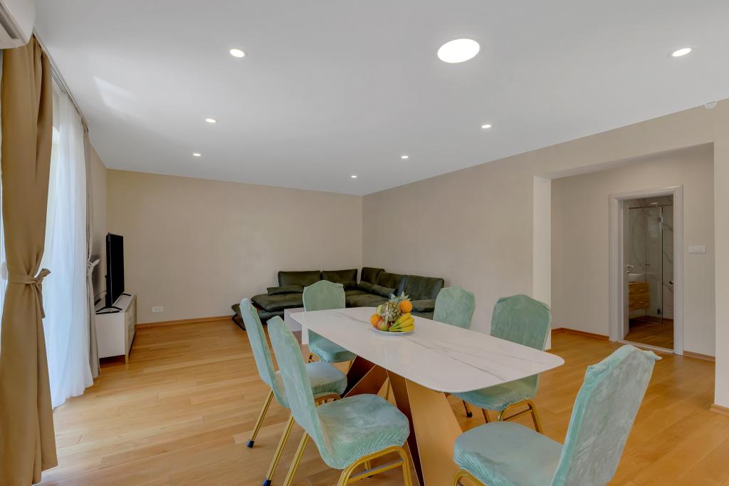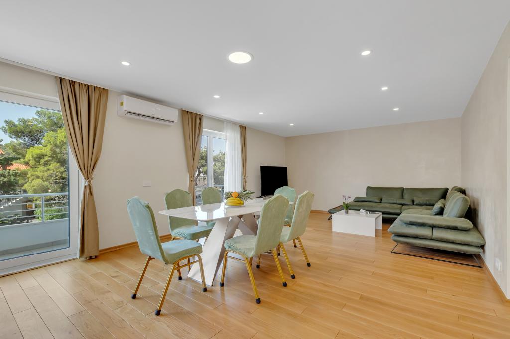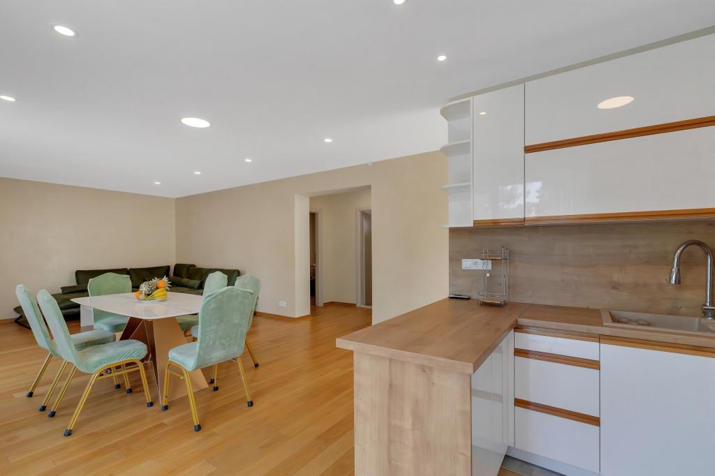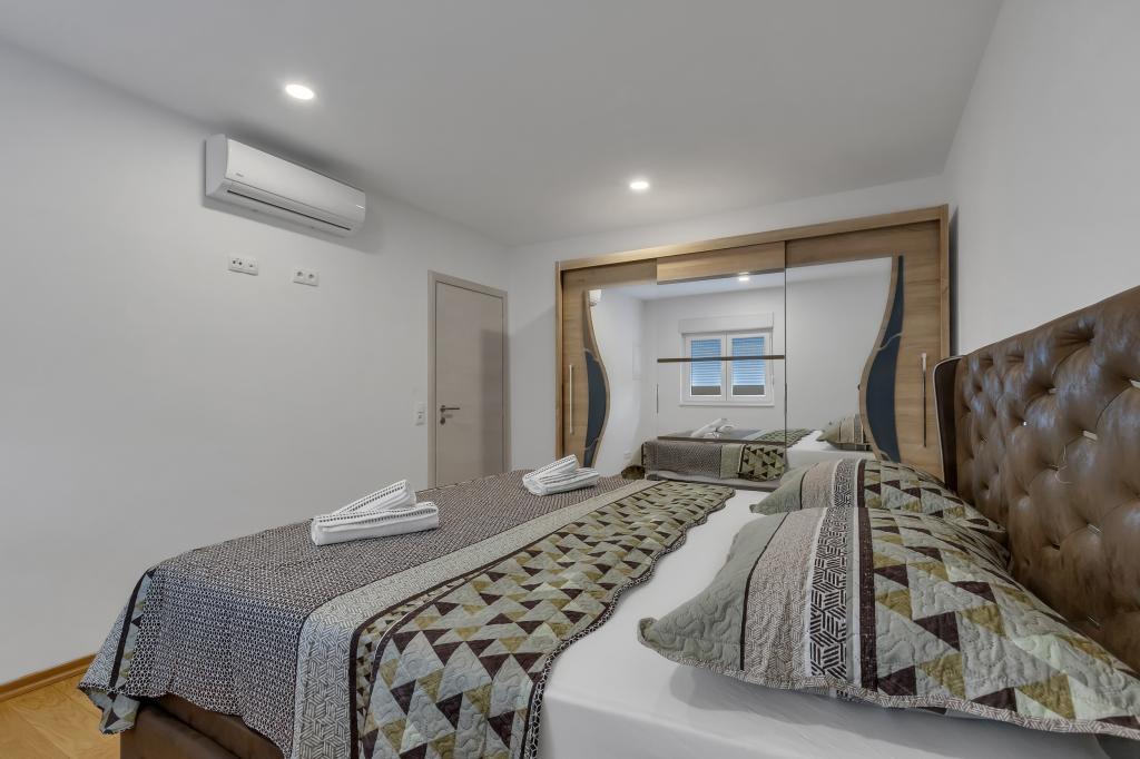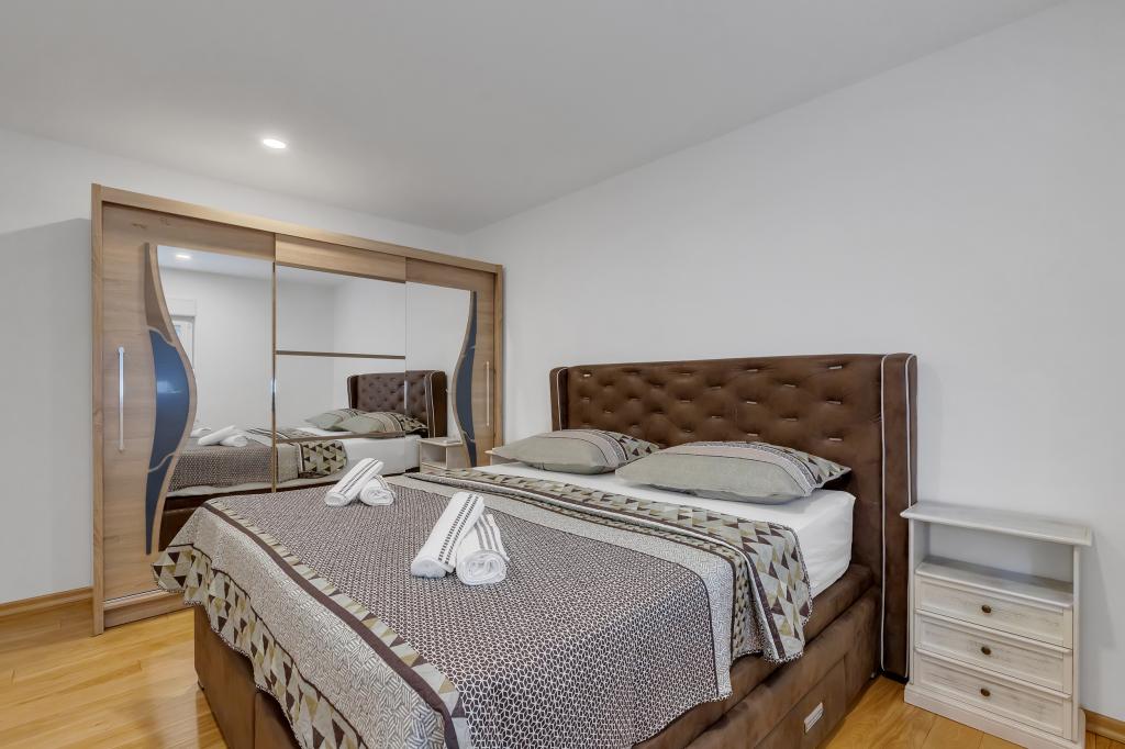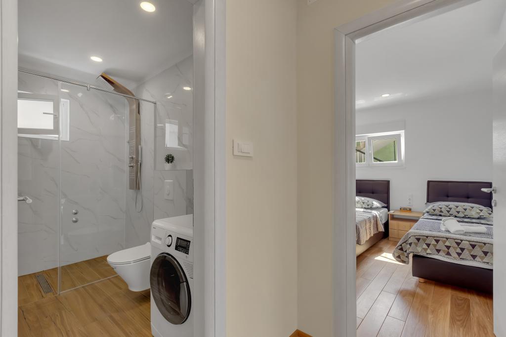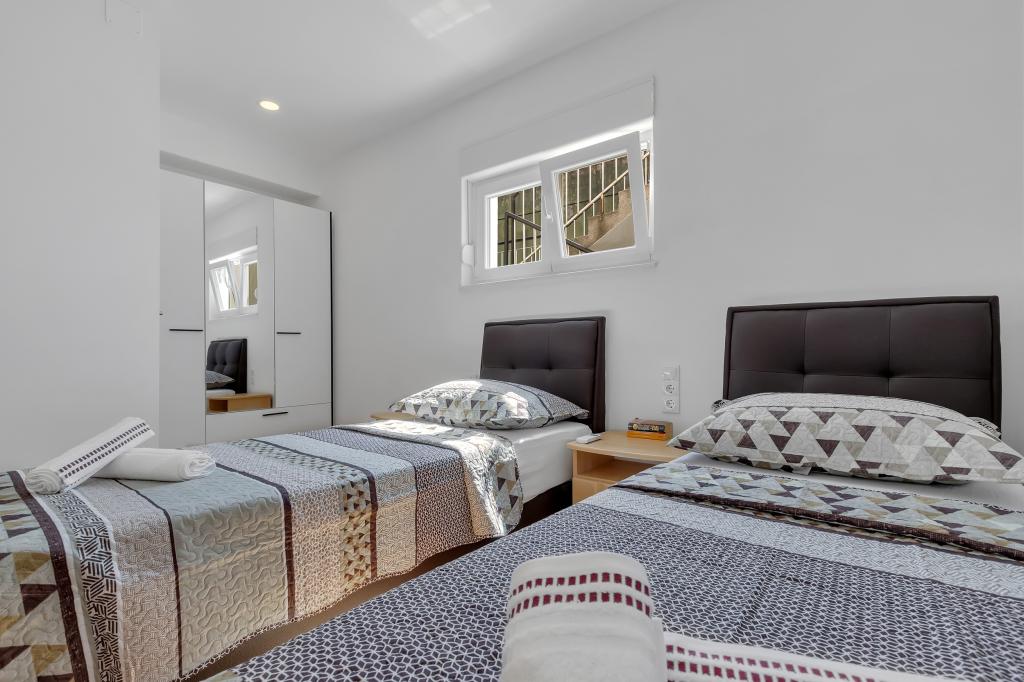 Komplett ausgestattete Wohnung/Appartement mit zwei Zimmern (Doppelzimmer, Bett 180x200, das andere mit 2x getrennten Betten, die auf Wunsch verbunden werden können), 2 Badezimmer, großes Wohnzimmer mit Küche (zusammen 40m2) Die Wohnung hat alles, was man für einen längeren Aufenthalt braucht und komfortablen Aufenthalt und liegt im Zentrum von Makarska