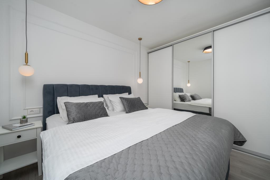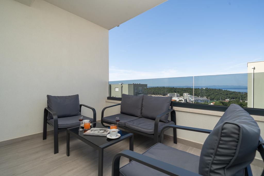 Dieses Apartment verfügt über 1 Schlafzimmer, ein Wohnzimmer mit einem Schlafsofa, eine Küche und einen Balkon mit Meerblick. Vor dem Gebäude gibt es einen kostenlosen Parkplatz.