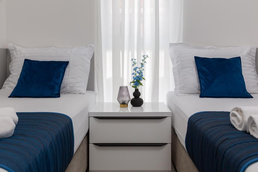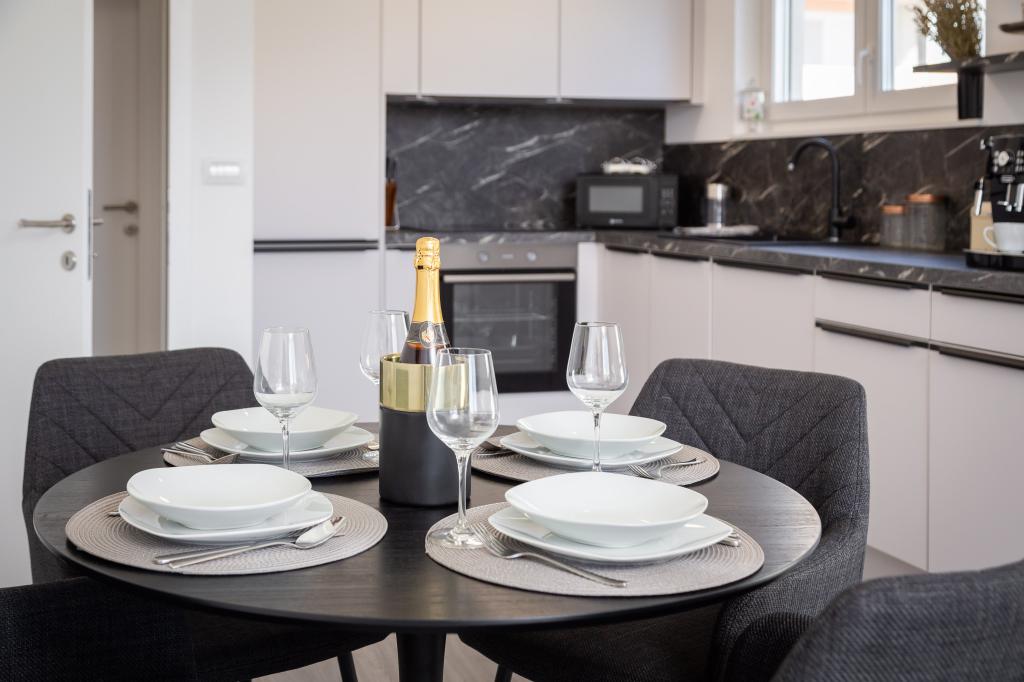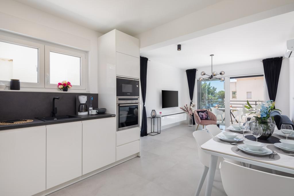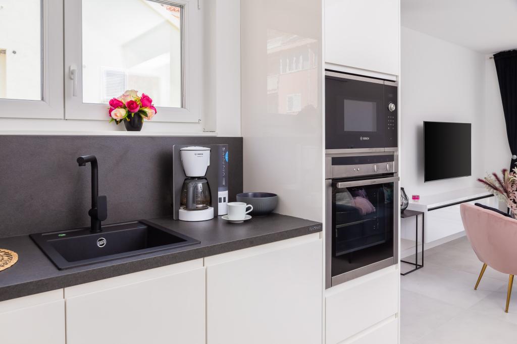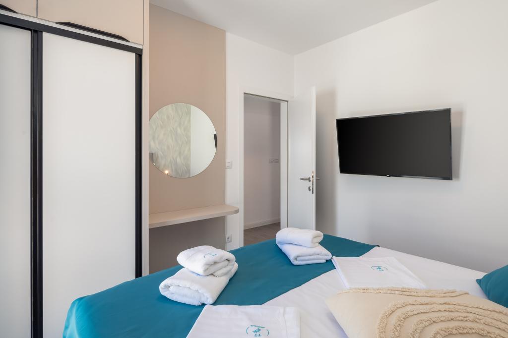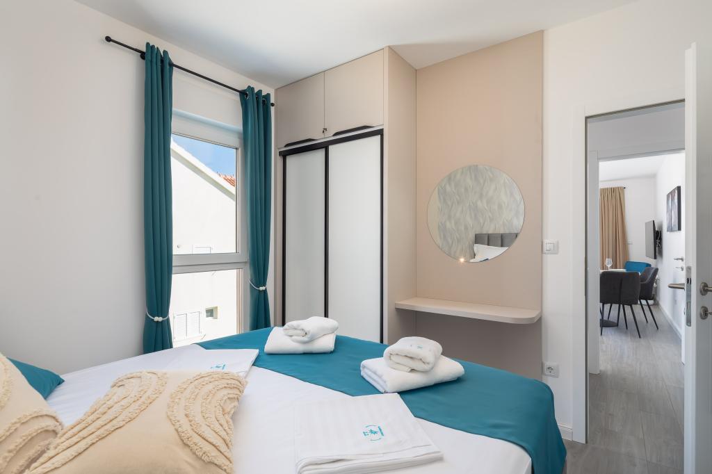 Das Apartment Edvina liegt 500 m vom Strand entfernt. Es bietet seinen Gästen einfachen Zugang zur wunderschönen Adriaküste und bietet gleichzeitig einen komfortablen und modernen Wohnraum. Die Wohnung verfügt über zwei Schlafzimmer, die jeweils sorgfältig gestaltet sind, um einen ruhigen und komfortablen Aufenthalt zu gewährleisten. Die Schlafzimmer sind mit bequemen Betten ausgestattet. Der Balkon bietet einen wunderschönen Blick auf das Meer und die Stadt. Der Parkplatz befindet sich neben dem Gebäude.