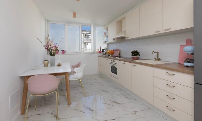 Komplett neu renovierte Wohnung in einem Wohnhaus. Es befindet sich im zweiten Stock, 3 Gehminuten vom Strand und 10 Gehminuten vom Zentrum entfernt mit Parkplätzen vor dem Gebäude.