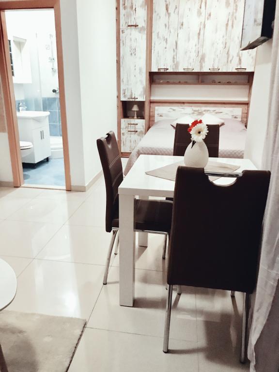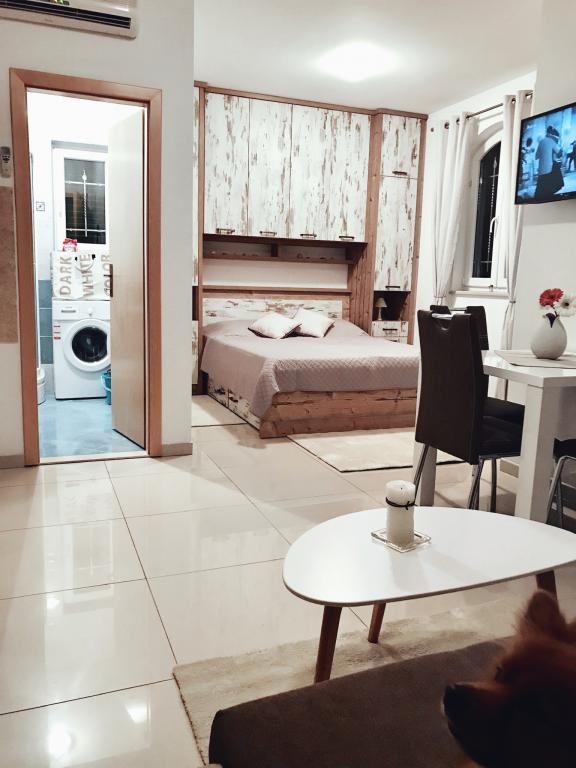 Das J&B - Beachside Studio Apartment befindet sich direkt am zentralen Strand in Makarska - erste Reihe zum Meer. Die Gäste haben eine private Terrasse mit Meerblick. Das Studio ist klimatisiert, verfügt über Sat-TV, WLAN und eine voll ausgestattete Küche mit Kühlschrank und Herd. Der Parkplatz ist im Preis inbegriffen. In der Nähe befindet sich der Busbahnhof Poluotok Sv. Petar, das Zentrum und der Hafen von Makarska. Vom Flughafen Split trennen Sie 96,6 km.