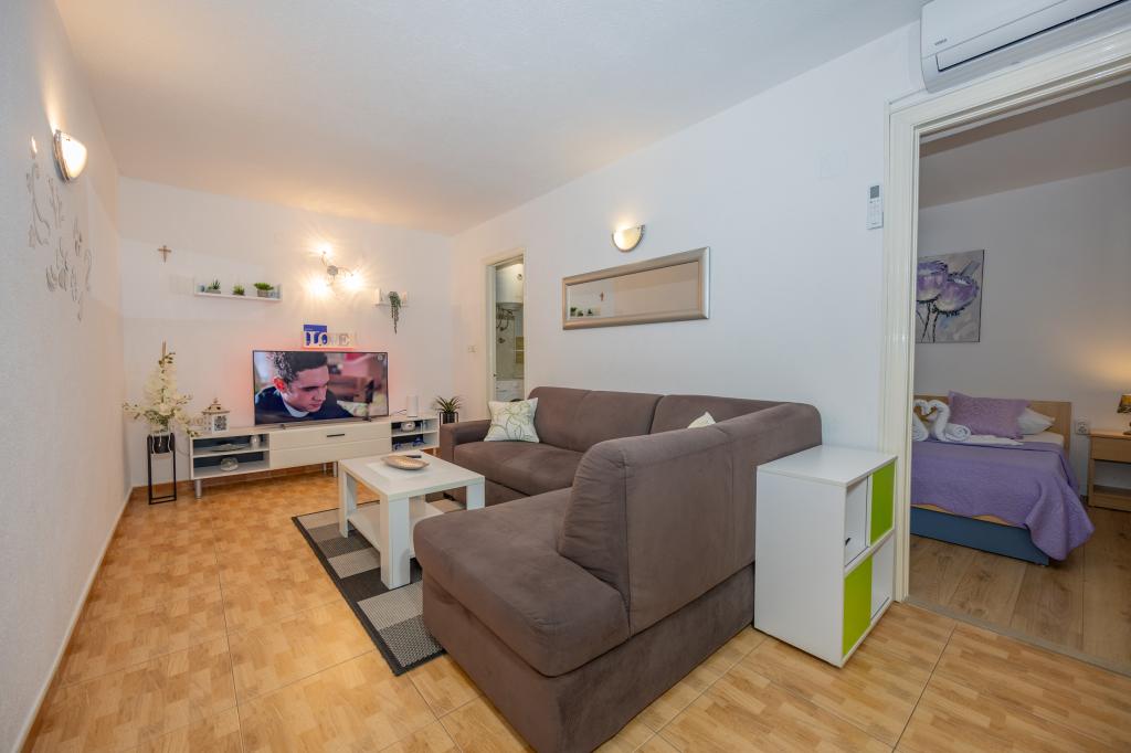 Dieses gemütliche Apartment mit ca. 40 m² bietet alles für einen angenehmen Aufenthalt. Die Unterkunft umfasst: Schlafzimmer mit einem komfortablen Doppelbett, Wohnzimmer mit Schlafcouch (geeignet für 1 Erwachsenen oder 2 Kinder), Smart-TV und Klimaanlage, voll ausgestattete Küche mit Geschirrspüler, Mikrowelle, Kaffeemaschine und Wasserkocher, Badezimmer mit Dusche und Waschmaschine. Vor dem Haus befindet sich eine private Terrasse mit Esstisch. Ein gemeinschaftlicher Grillplatz steht Ihnen ebenfalls zur Verfügung – ideal für entspannte Abende im Freien. Das Apartment ist perfekt für Paare oder kleine Familien, die eine komfortable und gut ausgestattete Unterkunft in ruhiger Lage suchen. Es bietet die ideale Kombination aus Ruhe und Komfort und ist dennoch nur wenige Fahrminuten vom Stadtzentrum entfernt. Genießen Sie entspannende Momente oder erkunden Sie das vielfältige Angebot der Stadt mit Restaurants, Cafés und Geschäften – alles ist bequem erreichbar. Zwei Parkplätze stehen zur Verfügung.