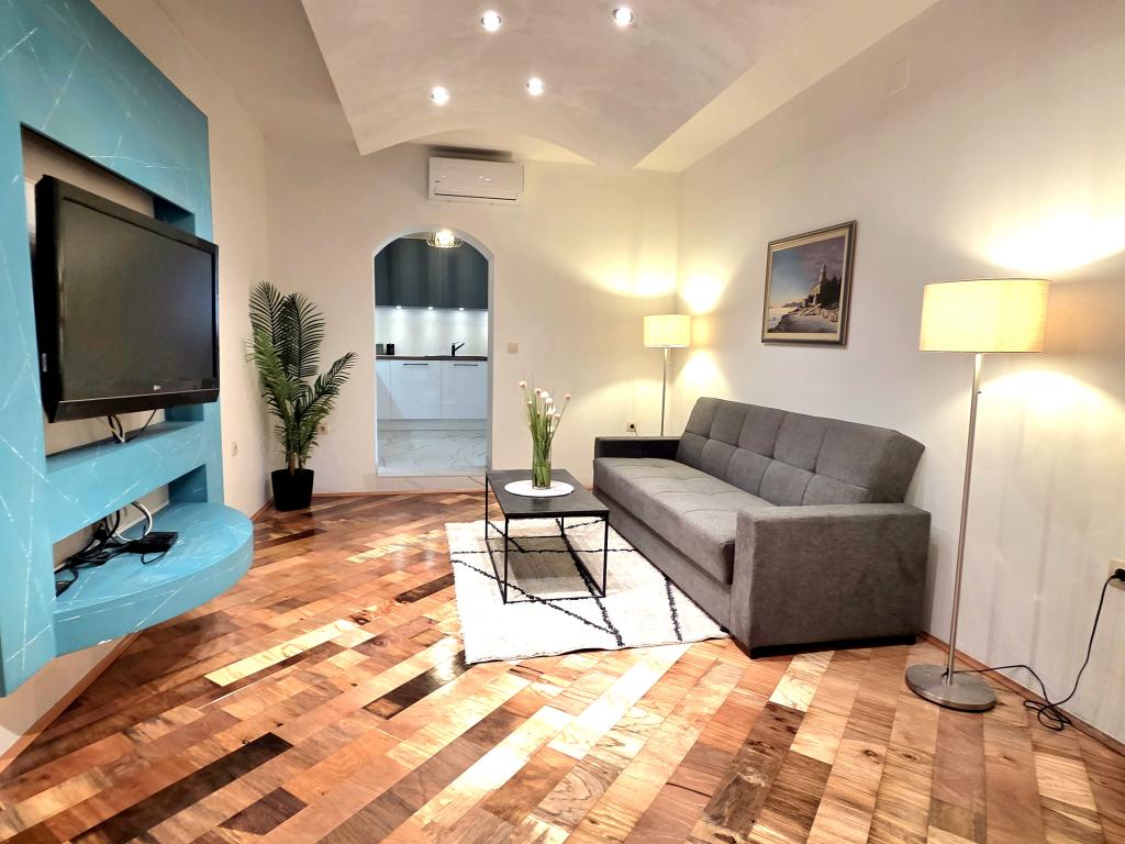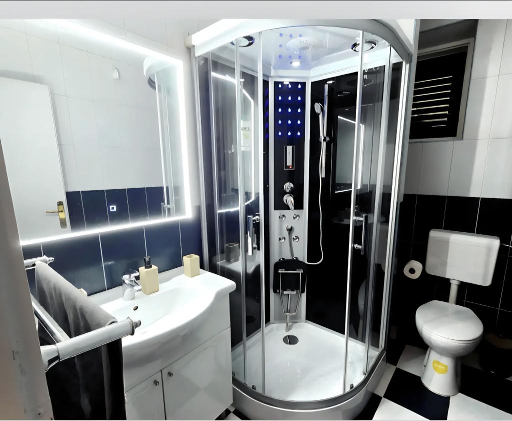 Das Apartment Robert liegt 400 m oberhalb der Altstadt. Es bietet auf 120 m² zwei Schlafzimmer, zwei Badezimmer, ein Wohnzimmer und eine Küche. Vor dem Apartment befinden sich ein Whirlpool, ein Fernseher, ein Tisch mit Bänken, ein Grill, ein Swimmingpool mit Liegestühlen und Dusche sowie ein privater Parkplatz. Herzlich willkommen!