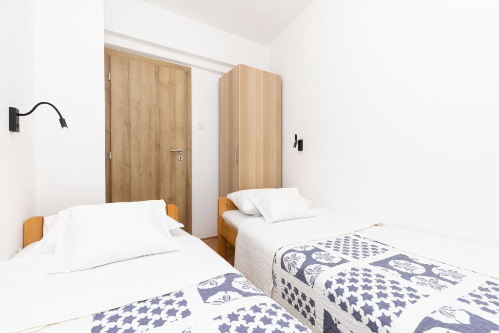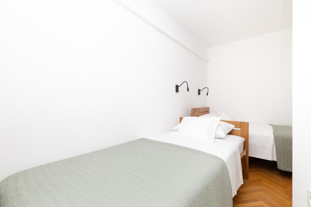 Wohnung in einem Einfamilienhaus in der Altstadt. Die Unterkunft befindet sich in ruhiger Lage, 10 Gehminuten vom Zentrum und 15 Gehminuten vom Strand entfernt. Ein Parkplatz steht 50 Meter von der Wohnung entfernt zur Verfügung.
