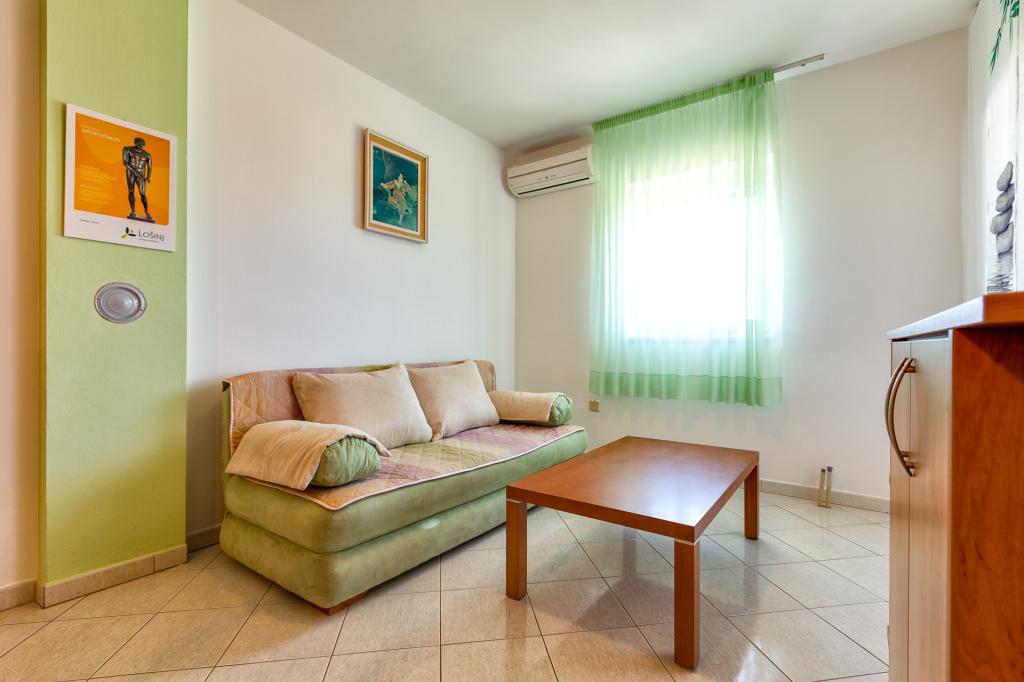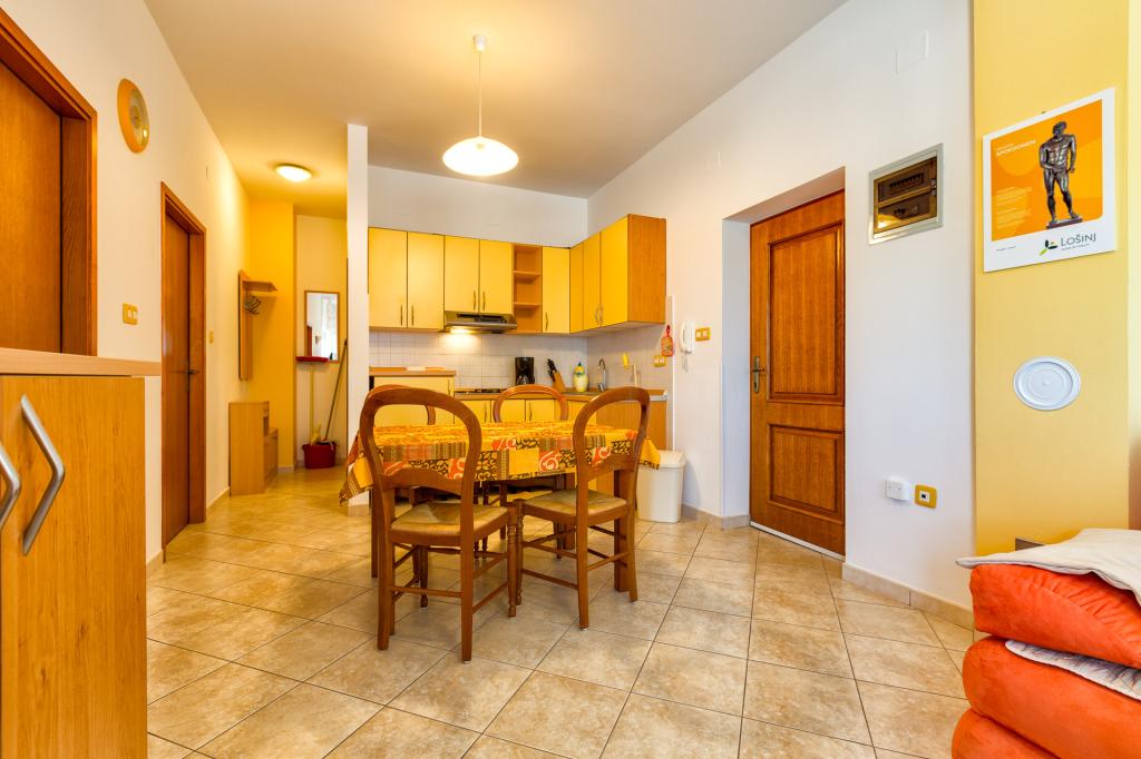 Es stehen Ihnen 3 komplett ausgestattete Apartments zur Verfügung. Apartment 1 für vier Personen befindet sich im Erdgeschoss, Apartment 2, ebenfalls für vier Personen, im zweiten Stock sowie Apartment 3 für zwei Personen. Im Apartmentpreis sind zusätzliche Leistungen kostenlos enthalten: ein Kind unter 3 Jahren ist kostenlos, ein Grillplatz im Hof, die Nutzung der Waschmaschine in der gemeinsamen Waschküche im Erdgeschoss, wo Ihnen ein Bügelbrett und ein Bügeleisen zur Verfügung stehen. Am Abreisetag bieten wir Ihnen eine Gepäckaufbewahrung an, falls der Gast später von der Insel abreist, sowie einen Transportservice zum Busbahnhof und Fährhafen in Mali Lošinj. Für Ihr Auto ist ein Parkplatz vor dem Haus vorhanden und im Hof gibt es Platz für Fahrräder, Motorräder … Zusätzliche Zuschläge; Endreinigung einmalig 40 EUR und Haustiere auf Anfrage gegen Aufpreis. Gerne erfüllen wir Ihre zusätzlichen Wünsche, Anforderungen und Bedürfnisse vor Ihrer Ankunft und während Ihres Aufenthalts professionell und schnell.