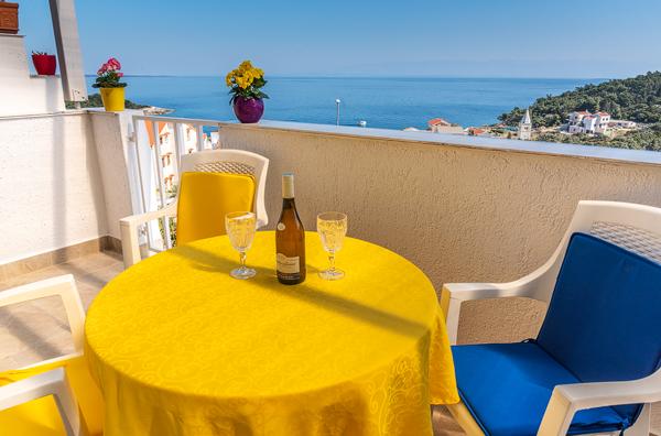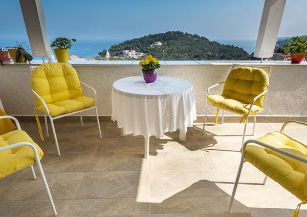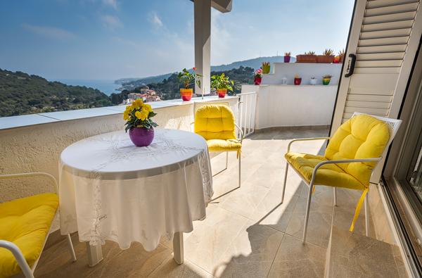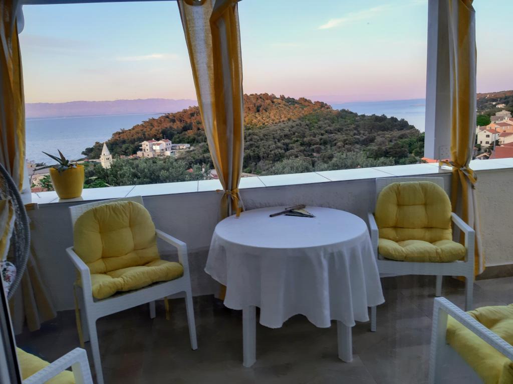 Gemütliche und äußerst saubere Wohnung mit einer soliden Terrasse und herrlichem Blick auf das Meer und die Berge. Sehr engagierter und netter Besitzer, immer bereit für den Dialog und mögliche Hilfe. Gute Lage. Der einzige kleine Nachteil - die Nähe der Hauptstraße, von der der Verkehrslärm kommt.