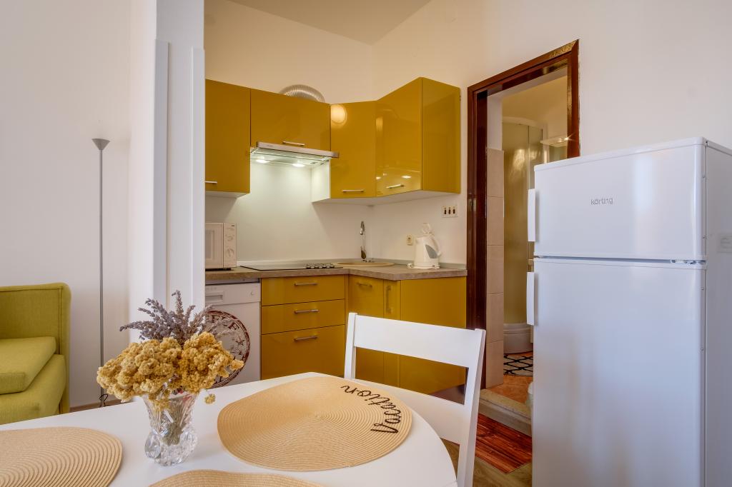 Mehr lesen UnterkunftseinheitenDie Wohnung ist für 3 Personen (2+1) ausgelegt. Bei der Reservierung wird eine Anzahlung in Höhe von 100 Euro auf das Konto des Mieters überwiesen. Bei Nichterscheinen wird die Vorauszahlung nicht zurückerstattet. Der Restbetrag für die reservierte Unterkunft wird je nach Priorität des Gastes am Anreisetag auf das Konto des Mieters oder in bar überwiesen. Bei vorzeitiger Abreise vom gebuchten Termin wird der gesamte Betrag des gebuchten Termins in Rechnung gestellt. Einmalige Endreinigung 30 Euro. Anreise ab 14:00 Uhr, Abreise bis 10:00 Uhr. Leider akzeptieren wir keine Haustiere. Die Kurtaxe ist im Preis inbegriffen.