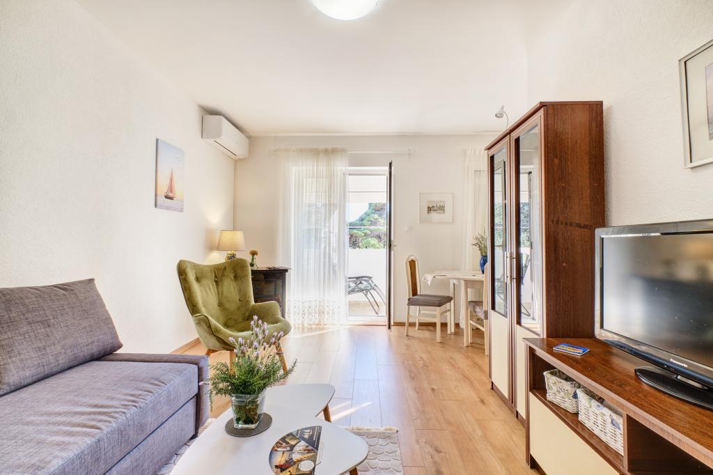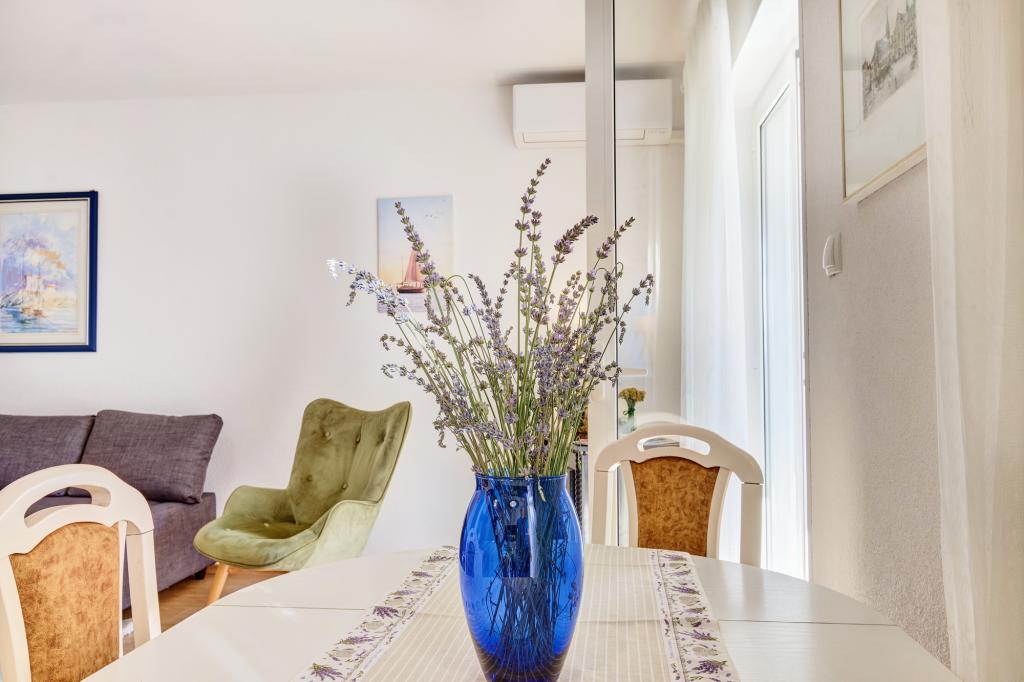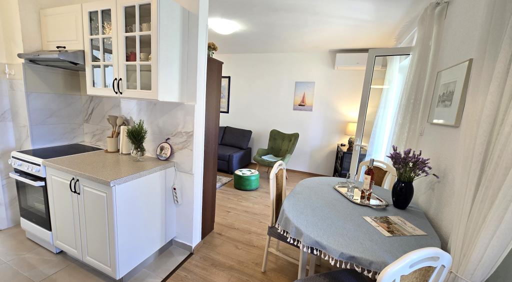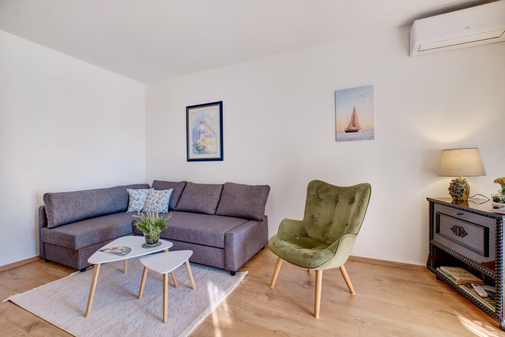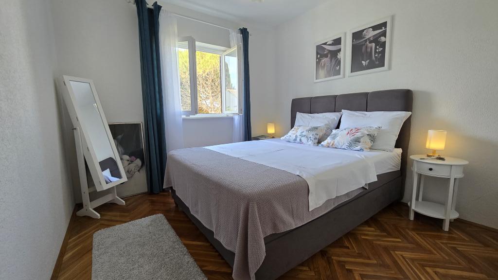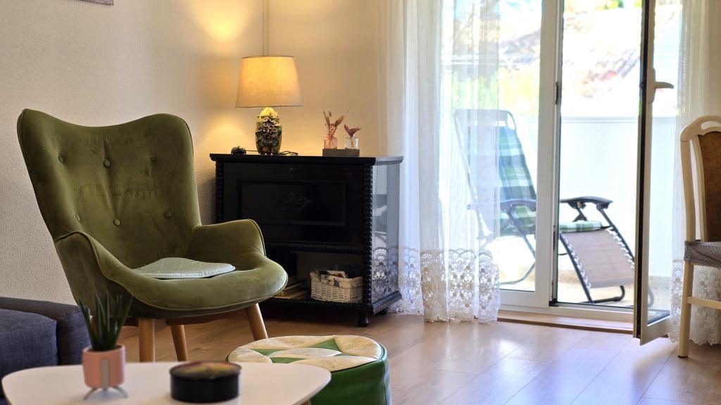 Das Apartment Blanka 1 ist ideal für Ihren Urlaub, es bietet Platz für 3 Personen. Es bietet Ihnen ein Schlafzimmer mit Doppelbett, ein zusätzliches Schlafzimmer für eine Person, ein Wohnzimmer, ein Esszimmer, eine Küche und ein Badezimmer. Eine großzügige Terrasse mit Blick auf den Garten bietet zusätzlichen Raum zum Entspannen und für geselliges Beisammensein. Zu den weiteren Annehmlichkeiten gehören WLAN, Klimaanlage und Privatparkplatz, was dieses Apartment zu einer praktischen und komfortablen Wahl für Ihren Aufenthalt macht.