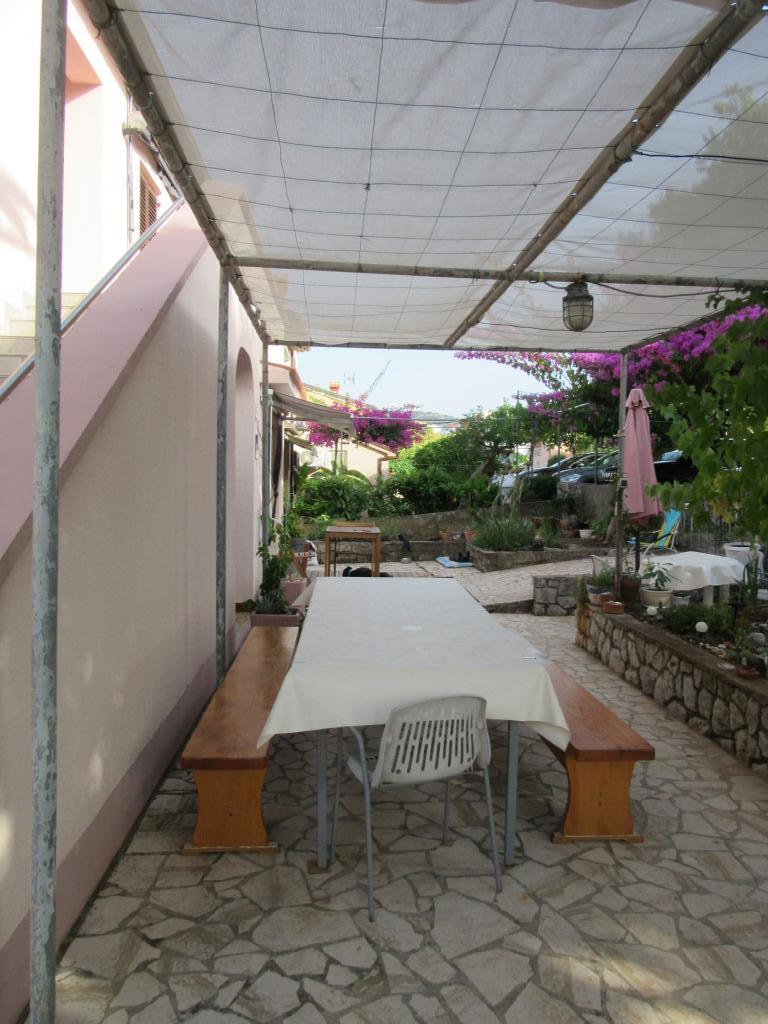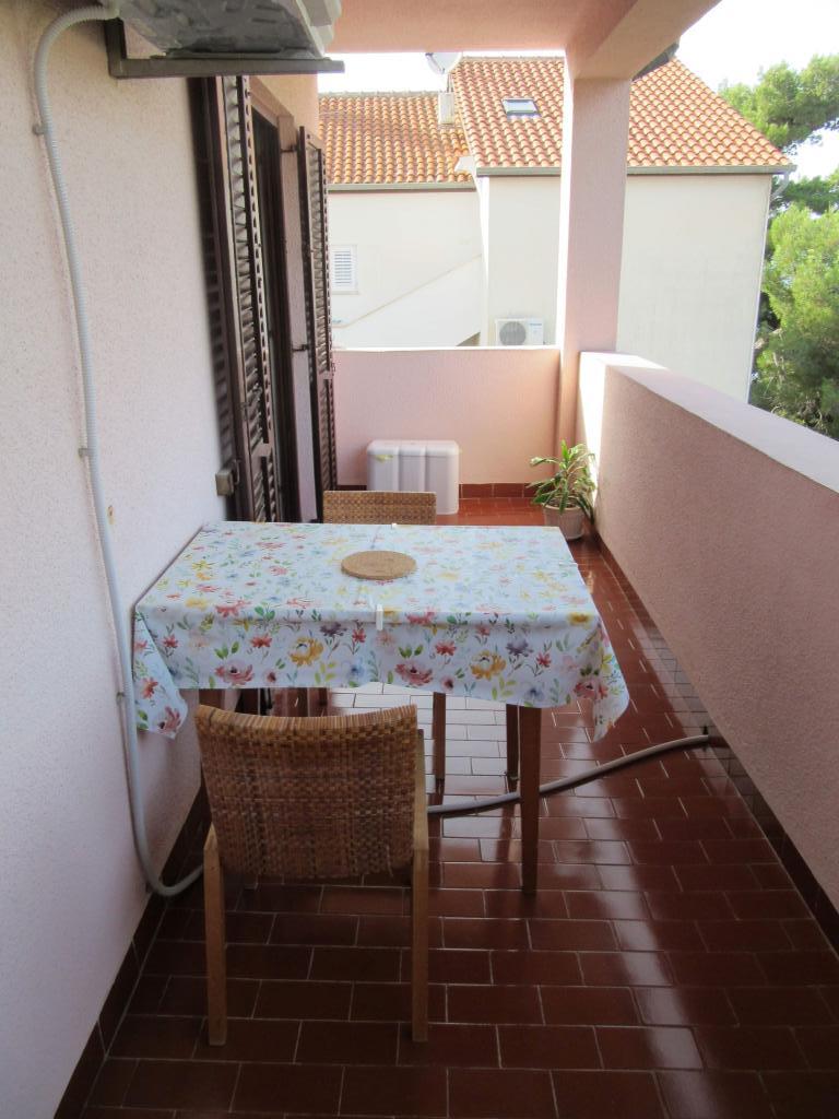 Komplett und modern ausgestattete Zweizimmerwohnung im ersten Stock eines Einfamilienhauses: zwei Schlafzimmer, Esszimmer, Küche, Badezimmer, Wohnzimmer, zwei Balkone (Meerblick). Die Anlage liegt in einer ruhigen Gegend, in der Nähe von Stränden, Märkten, Restaurants und anderen städtischen Infrastrukturen. Im Hof des Hauses besteht die Möglichkeit zum Verweilen und geselligen Beisammensein an einem großen Tisch mit Bänken, außerdem steht den Gästen der Grill zur Verfügung. Ein Parkplatz vor dem Haus.