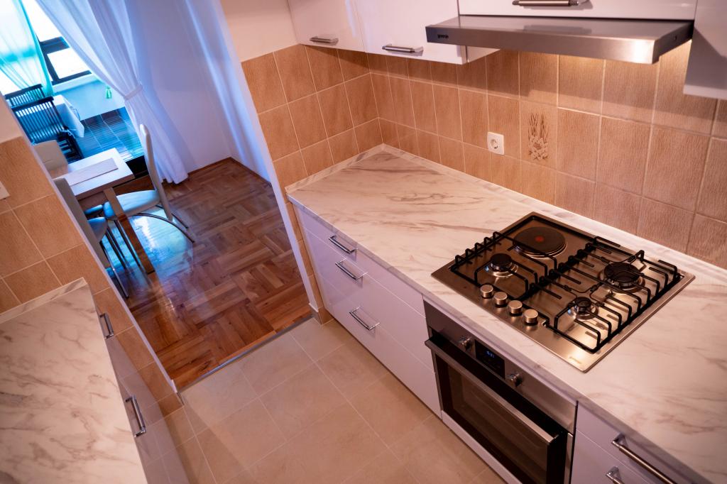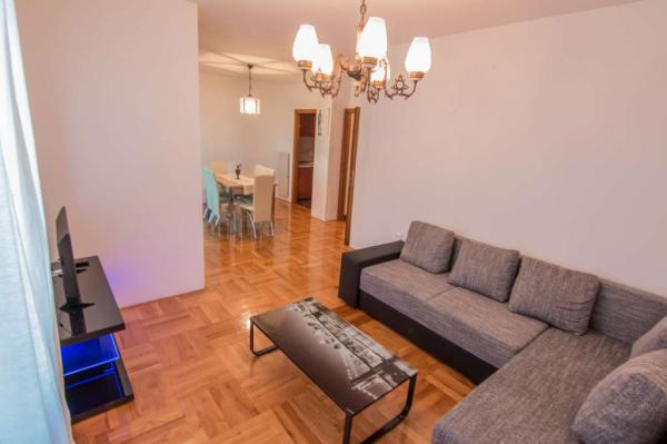 Apartment mit Meerblick ist eine sehr komfortable Unterkunft für 4 bis 6 Personen. Das geräumige Wohnzimmer verfügt über eine Terrasse mit Blick auf das Meer und die umliegenden Inseln. . Es ist nur 10 Gehminuten vom nächsten Strand entfernt. Die Zimmer sind mit Bettwäsche ausgestattet. Die Küche hat alles was Sie brauchen. Die Wohnung verfügt über 2 Bäder und kostenlose, reservierte Parkplätze vor dem Gebäude.