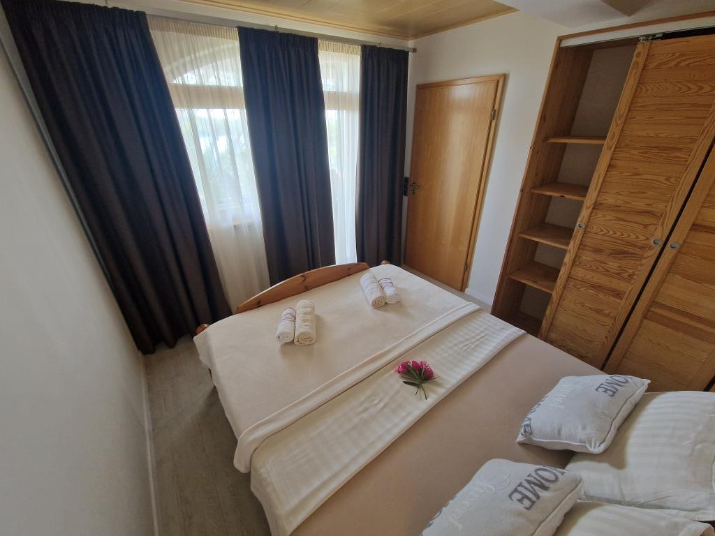 Die voll ausgestattete Wohnung verfügt über zwei separate Schlafzimmer, ein Wohnzimmer mit Küche, ein Badezimmer und eine Terrasse. Wunderschöner Blick auf das Meer von der Terrasse, vom Schlafzimmer und vom Wohnzimmer. Es liegt in einer ruhigen Gegend von Mali Lošinj, dem Dorf Poljana I, 90 m vom Meer entfernt. Der Strand besteht aus Kies und Beton und liegt in einer Entfernung von 350 m. In der Nähe der Wohnung gibt es eine Promenade am Meer und einen Radweg. Parkplätze befinden sich vor der Wohnung. Haustiere sind willkommen (Aufpreis für ein Haustier beträgt 7 € pro Tag). Die Endreinigung der Wohnung beträgt 60 €
