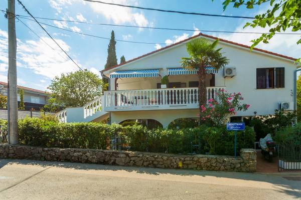Voll ausgestattete Apartments mit eigenem Parkplatz, nur 200 Meter vom Strand entfernt. Die Anlage ist nur zehn Gehminuten vom Zentrum von Malinska entfernt. Die Apartments sind klimatisiert.