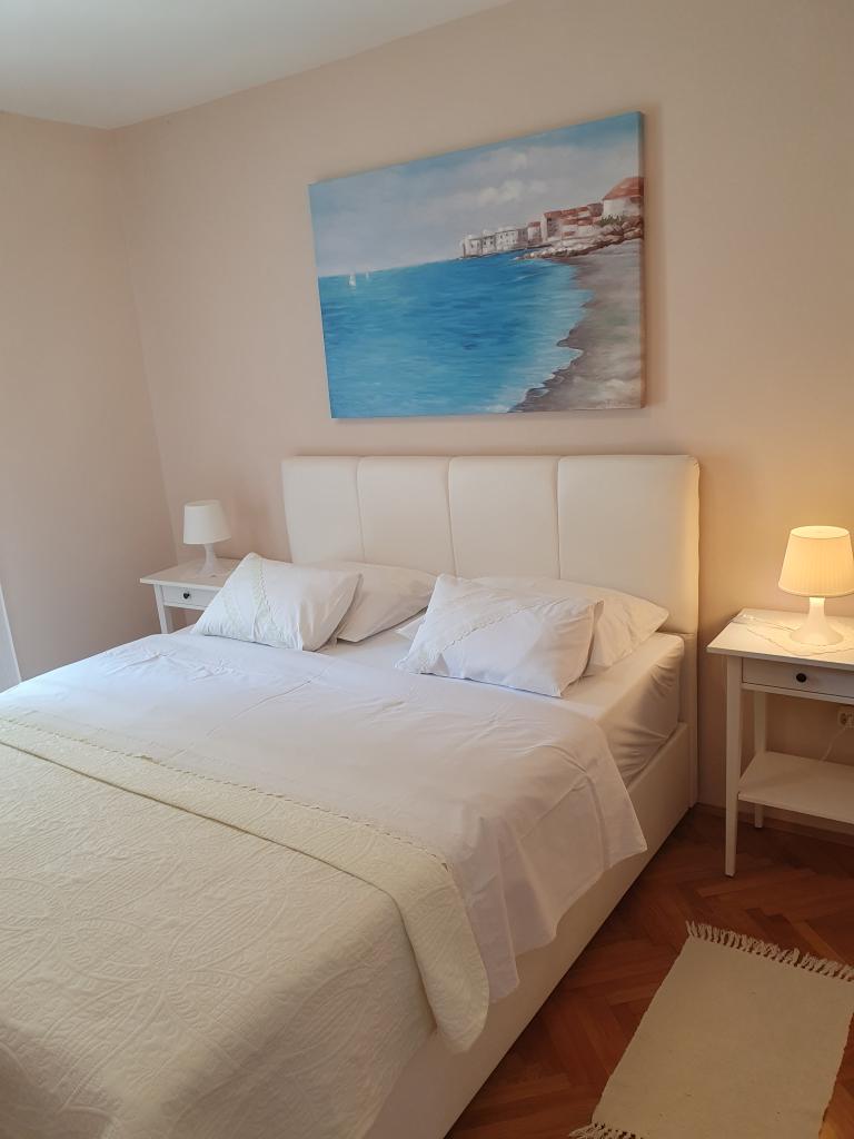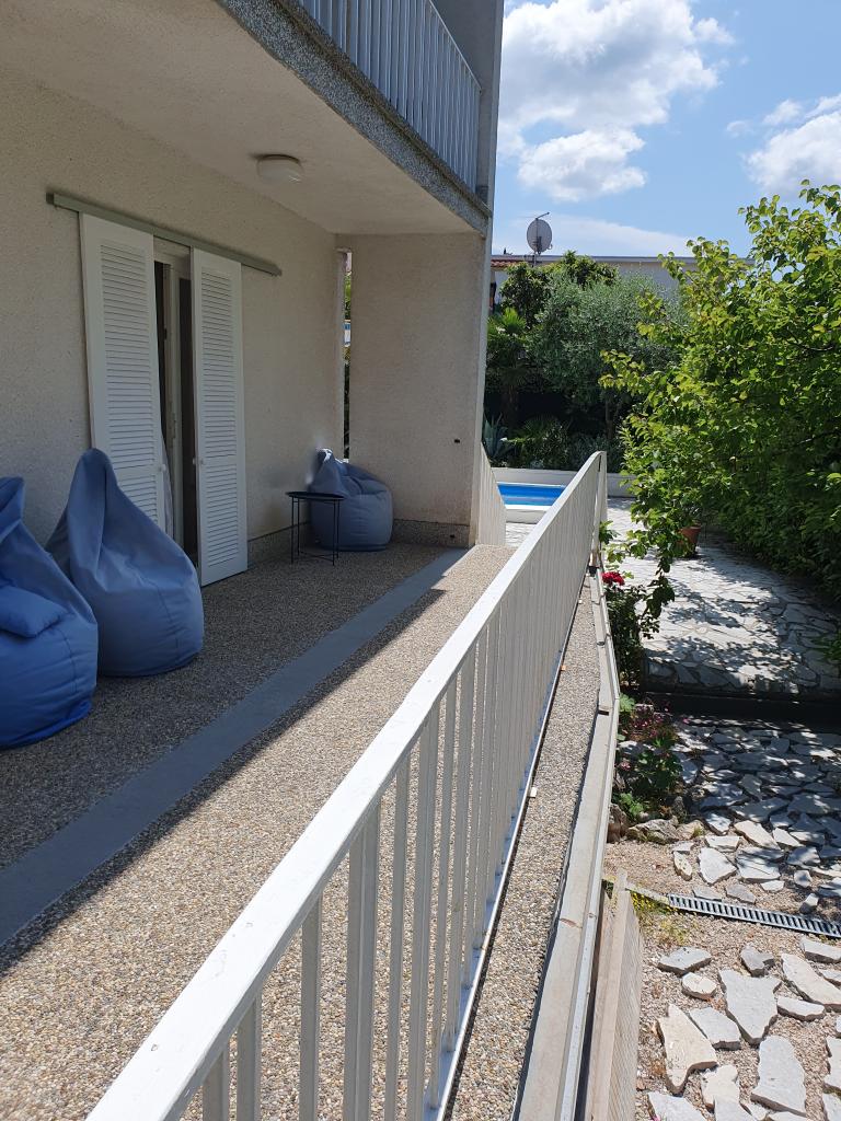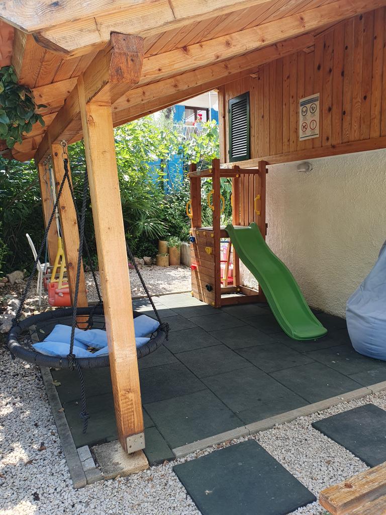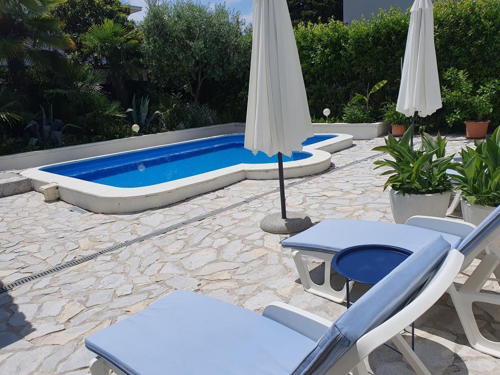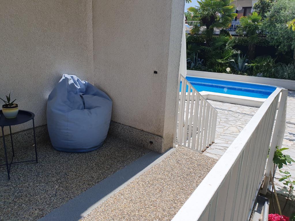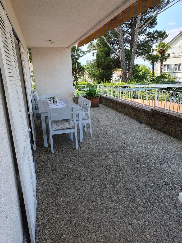 Zwei geräumige und voll ausgestattete Apartments mit großen Terrassen, umgeben von viel Grün, mit Swimmingpool und Kinderspielplatz im Garten. In unmittelbarer Nähe zum Meer/Strand, dem Stadtzentrum und allen wichtigen Einrichtungen. Sicherer Parkplatz.