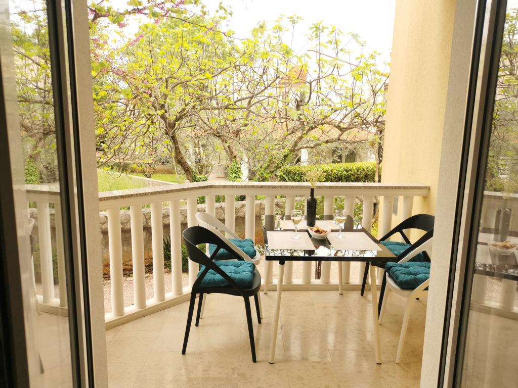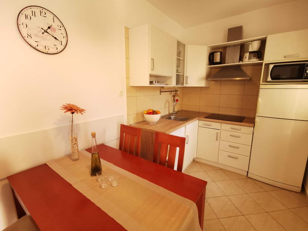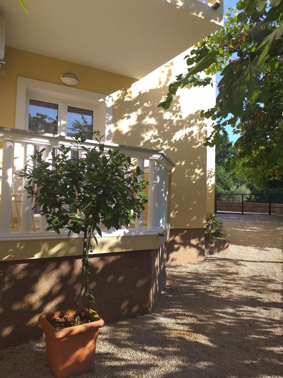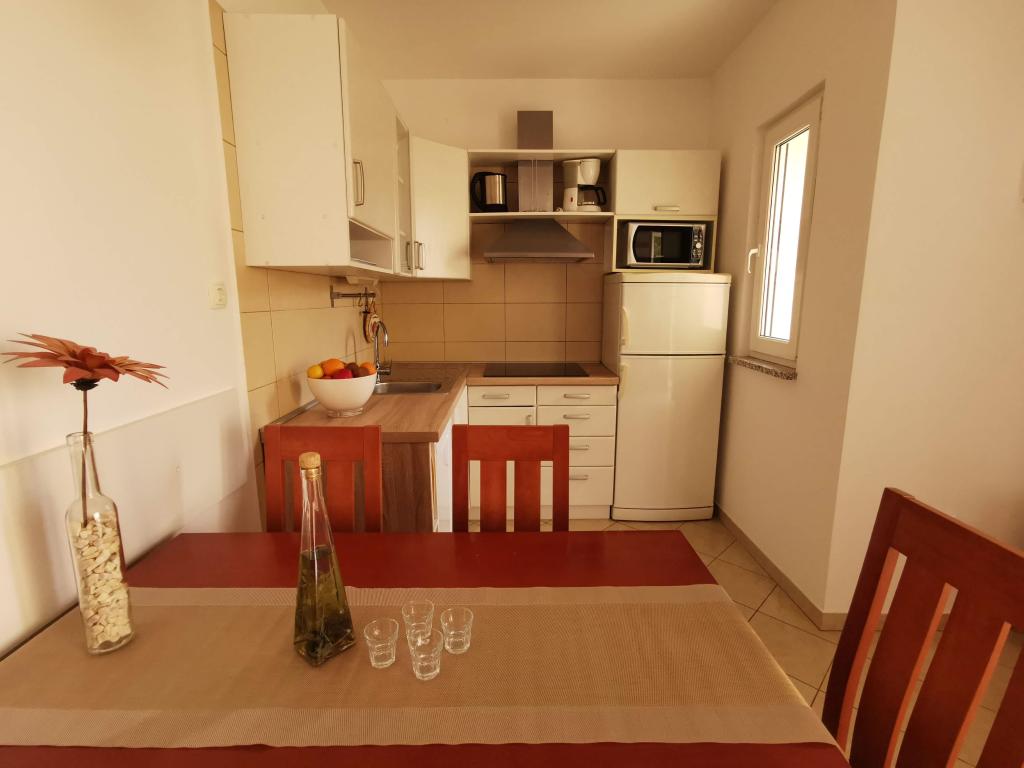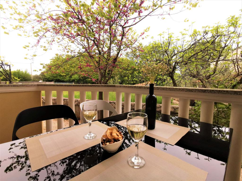 Zwei komplett eingerichtete Wohnungen mit separaten Eingängen und gesicherten Parkplätzen im eigenen geschlossenen Hof und natürlichem Schatten. Jedes Apartment ist klimatisiert und verfügt über eine Terrasse. Beide verfügen über WLAN, Satellitenprogramme, Mikrowelle, Kühlschrank mit Gefrierfach, Toaster, Filterkaffeemaschine, Wasserkocher, Haartrockner sowie Bettwäsche und Handtücher. Alle Schlafzimmer haben Moskitonetze an den Fenstern. Zum nächsten Strand sind es 10 Gehminuten und zum Zentrum von Malinska 40 Gehminuten. Die Wohnungen sind Teil eines Familienhauses in einem ruhigen Teil von Malinska und sind von viel Grün umgeben.