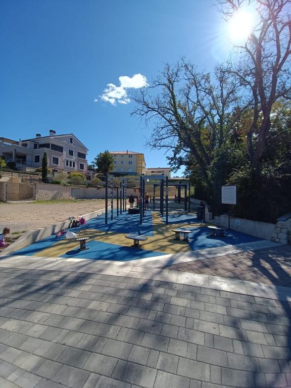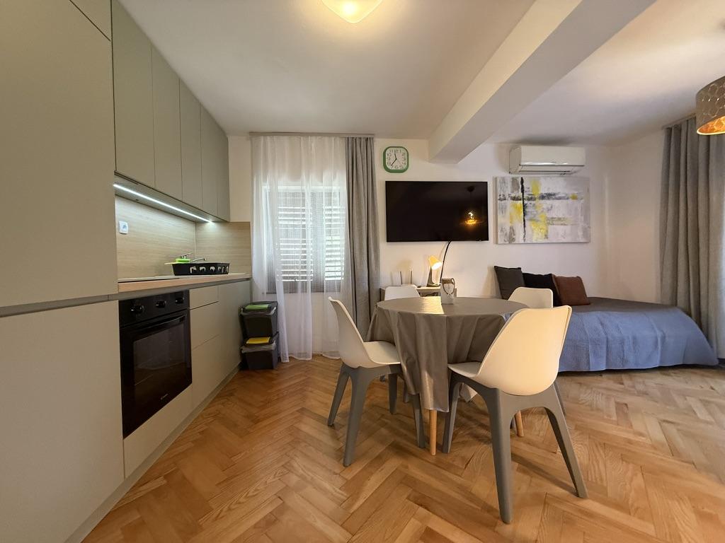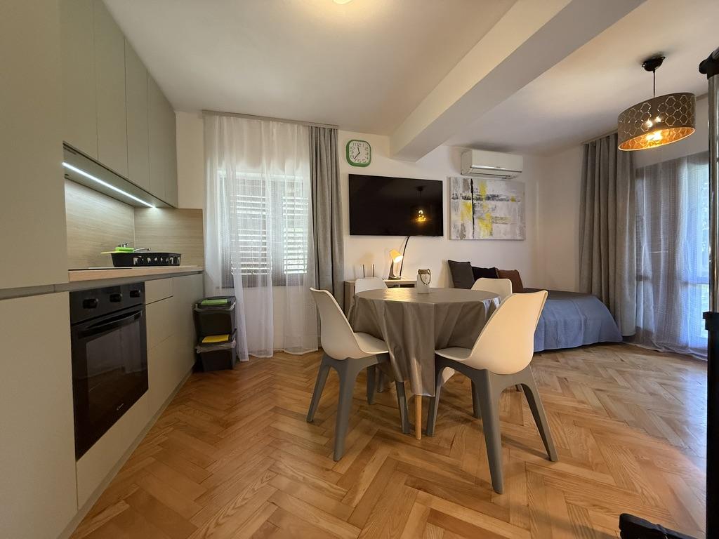 Die 50 m² großen Apartments mit Terrassen und 200 m² großem Garten liegen in einer ruhigen Gegend, 100 m vom Meer und dem Strand der Bucht von Rova entfernt. Es gibt einen separaten privaten und sicheren Parkplatz im Schatten. In unmittelbarer Nähe gibt es einen Kinderpark, Wassersport, ein Fitnessstudio im Freien sowie viele Restaurants und Strandbars, Promenaden am Meer und Radwege. Im weitläufigen Garten voller mediterraner Vegetation lässt es sich angenehm den ganzen Tag im Schatten verbringen.