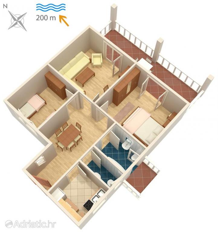 Die Apartments Karmelić befinden sich in einem ruhigen Teil von Malinska, in unmittelbarer Nähe des Meeres und eines wunderschön angelegten Strandes und nur 10 Gehminuten vom Zentrum entfernt. Im Gebäude gibt es ein Studio-Apartment für 2 Personen und ein Apartment für 4-6 Personen, kategorisiert mit 4*, voll ausgestatteten Apartments mit allem, was Sie zum Entspannen und Genießen benötigen. Die Gastgeber wohnen im Nachbargebäude und stehen Ihnen mit ihrer Freundlichkeit und Gastfreundschaft zur Verfügung, wenn Sie es wünschen. Für alle Gäste der Wohnung stehen Parkplätze innerhalb der Anlage sowie kostenloses WLAN, die kostenlose Nutzung der gemeinsamen Waschküche und die unbegrenzte Nutzung des gemeinsamen Grills im Garten zur Verfügung. Der Strand des Malin Hotels ist nur 3 Gehminuten vom Apartment entfernt und bietet unzählige Annehmlichkeiten zum Entspannen und Genießen – von Sonnenschirmen und Sonnenliegen über Bars, Restaurants bis hin zu Wassersportarten, und vor allem Kinder freuen sich über die Orte zum Spielen und Unbeschwertheit Baden. Viele organisierte Ausflüge zu Orten auf Krk und den umliegenden Inseln sowie eine Fülle von Kultur- und Unterhaltungsveranstaltungen werden Ihren Urlaub unvergesslich machen.