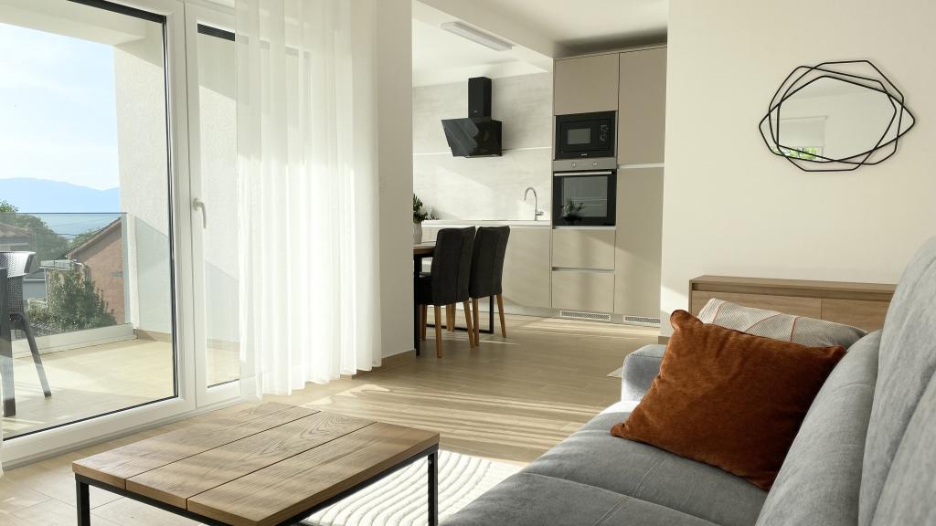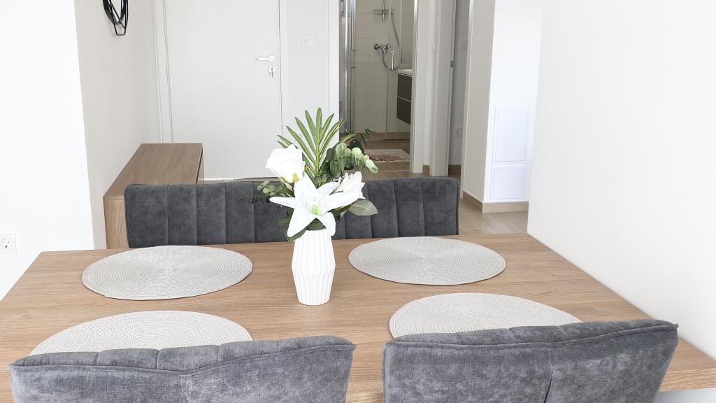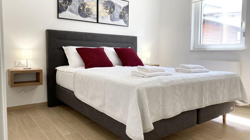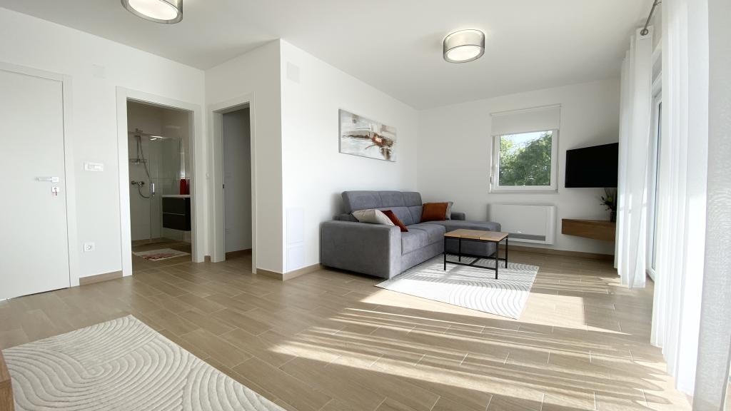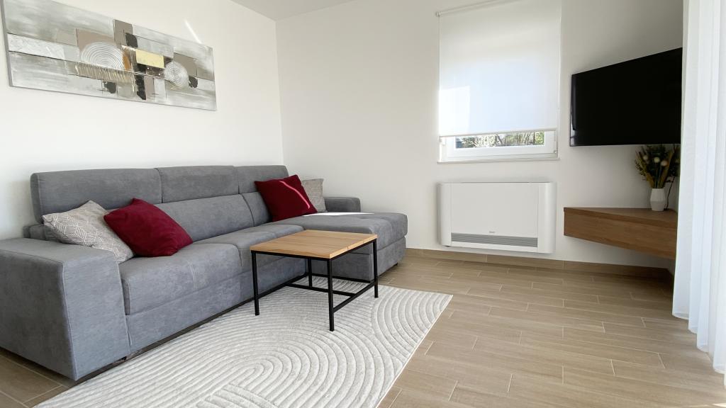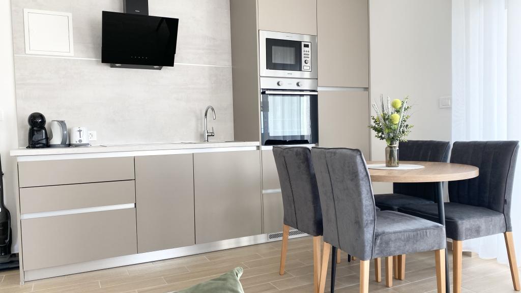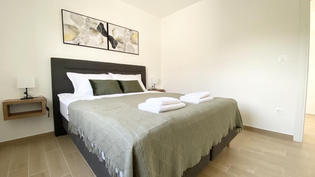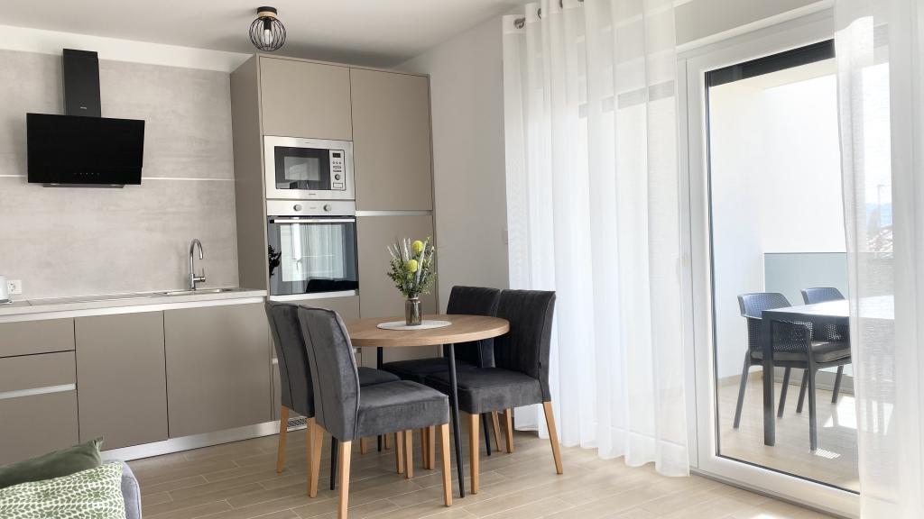 Die Villa Malina ist ein neues Apartmenthaus in ruhiger Lage im Ort. Sie bietet drei modern ausgestattete Apartments mit 50, 55 und 60 m² Wohnfläche, jeweils mit separatem Eingang und sicherem Parkplatz im Hof. Jedes Apartment verfügt über ein Wohnzimmer, ein Schlafzimmer, ein Badezimmer, eine Küche und eine überdachte Terrasse. Im Wohnzimmer befindet sich ein Schlafsofa für zwei Personen. Die Küche ist mit Geschirr, Geschirrtüchern, Backofen, Mikrowelle, Kühlschrank mit Gefrierfach, Wasserkocher, Elektroherd, Toaster und Geschirrspüler ausgestattet. Zur weiteren Ausstattung gehören Internetanschluss, Klimaanlage in allen Räumen, Staubsauger, Waschmaschine, Föhn und Moskitonetze an allen Fenstern. Ein Babybett ist auf Anfrage kostenlos erhältlich. Bei einem Aufenthalt von 10 Tagen oder länger erhalten Sie 10 % Ermäßigung.