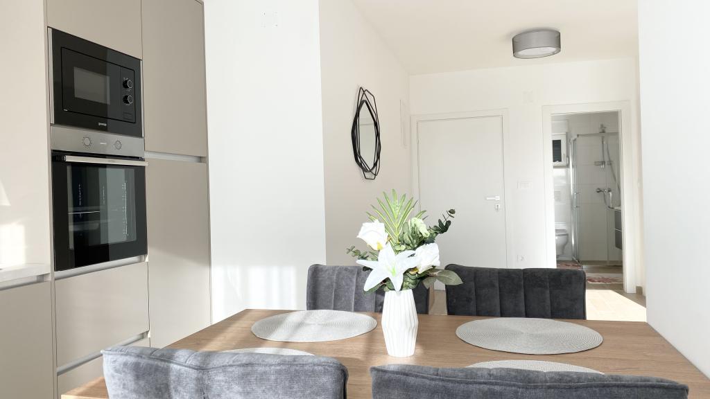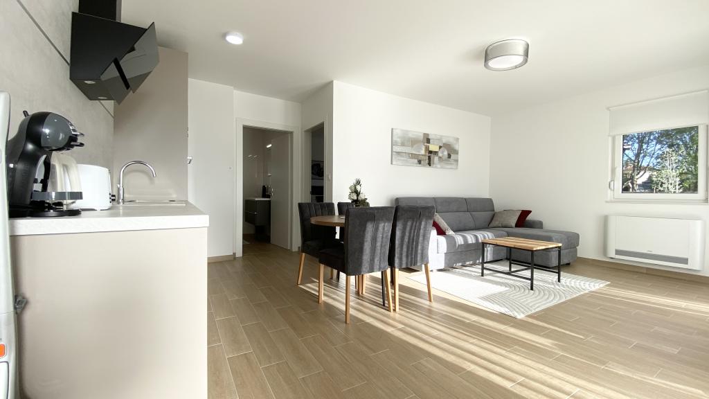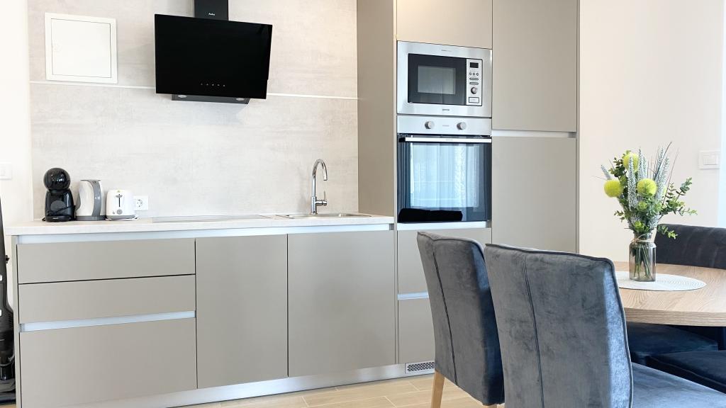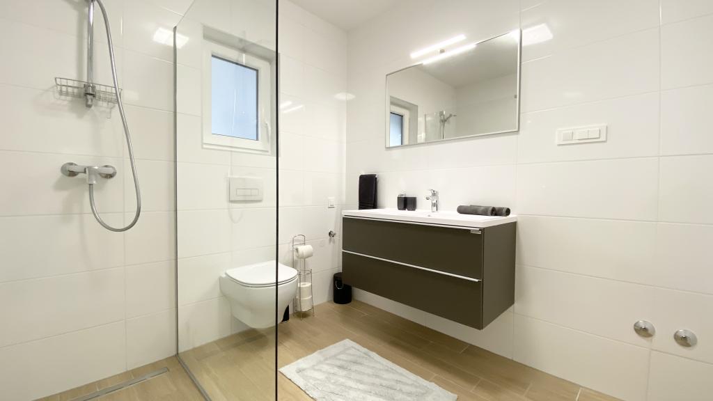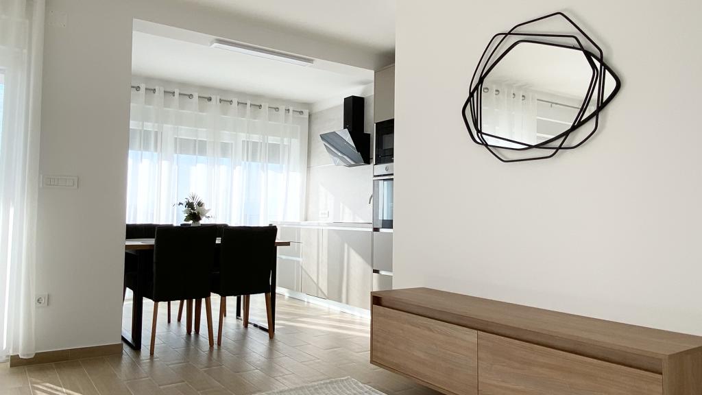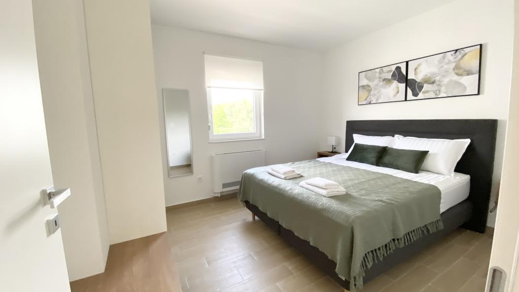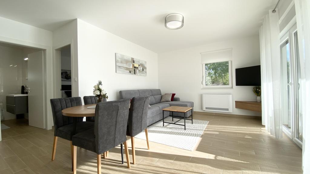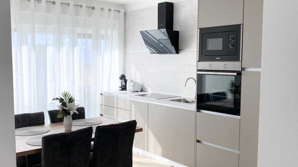Die Villa Malina ist ein neues Apartmenthaus in ruhiger Lage im Ort. Sie bietet drei modern ausgestattete Apartments mit 50, 55 und 60 m² Wohnfläche, jeweils mit separatem Eingang und sicherem Parkplatz im Hof. Jedes Apartment verfügt über ein Wohnzimmer, ein Schlafzimmer, ein Badezimmer, eine Küche und eine überdachte Terrasse. Im Wohnzimmer befindet sich ein Schlafsofa für zwei Personen. Die Küche ist mit Geschirr, Geschirrtüchern, Backofen, Mikrowelle, Kühlschrank mit Gefrierfach, Wasserkocher, Elektroherd, Toaster und Geschirrspüler ausgestattet. Zur weiteren Ausstattung gehören Internetanschluss, Klimaanlage in allen Räumen, Staubsauger, Waschmaschine, Föhn und Moskitonetze an allen Fenstern. Ein Babybett ist auf Anfrage kostenlos erhältlich. Bei einem Aufenthalt von 10 Tagen oder länger erhalten Sie 10 % Ermäßigung.