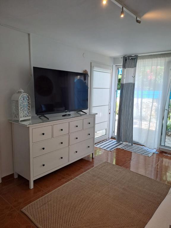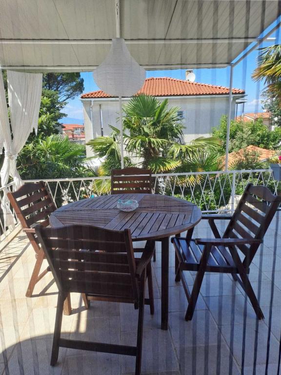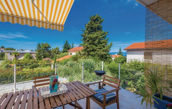 Die Wohnung befindet sich im ersten Stock eines Familienhauses in einem ruhigen Teil von Malinska. Das Haus ist umgeben von viel Grün, das Zentrum und die Geschäfte liegen in unmittelbarer Nähe (ca. 10 Minuten zu Fuß). Die Wohnung besteht aus einem Schlafzimmer (Doppelbett Zustellbett), Wohnzimmer mit Küche, Bad und großer Terrasse. Sichere Parkplätze im Hof.