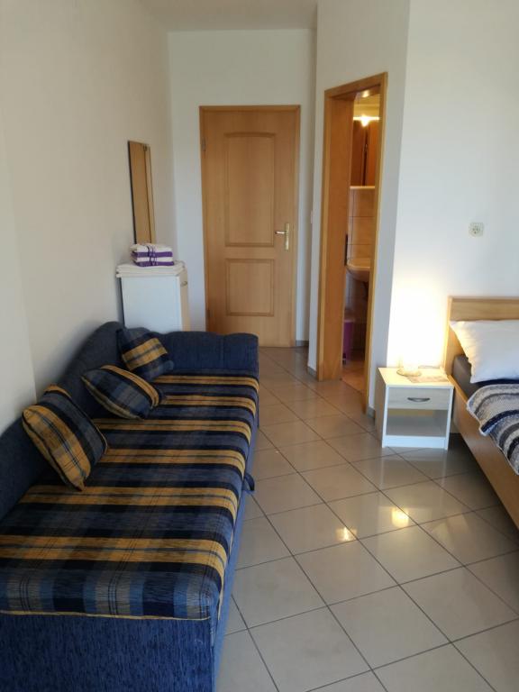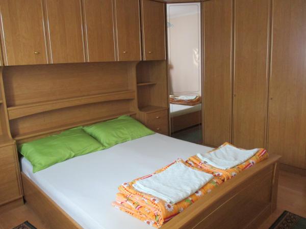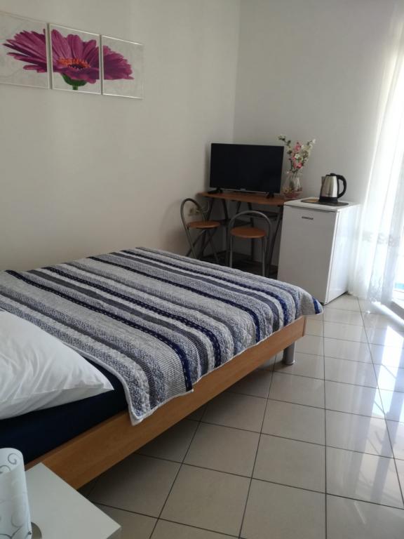 Diese funktionalen und hübsch eingerichteten Apartments, Studios und Zimmer im ruhigen Teil von Malinska bieten Urlaub für alle Sinne. Die Apartments befinden sich im Erdgeschoss des Gebäudes, 10 Gehminuten vom Stadtzentrum und dem nächsten Strand entfernt. Kostenlose Parkplätze befinden sich vor dem Gebäude, das auch einen Grill für den täglichen Gebrauch bietet. Das Apartment mit einem Schlafzimmer bietet Platz für 4 Personen und ist mit allem ausgestattet, was Sie für einen entspannten Urlaub benötigen (Klimaanlage, Mikrowelle, Kaffeemaschine, Wasserkocher, Waschmaschine, WLAN, SAT-TV, Kühlschrank, Geschirr, Handtücher, Bettwäsche). Das Studio mit Küchenzeile bietet Platz für bis zu 2 Personen und verfügt über eine Mikrowelle, eine Kaffeemaschine, einen Wasserkocher, WLAN, Sat-TV, einen Kühlschrank, Geschirr, Handtücher und Bettwäsche. Das Zimmer bietet Platz für 3 Personen und ist mit Kühlschrank, Wasserkocher, SAT-TV, WLAN, Bettwäsche, Handtüchern und Geschirr ausgestattet. Alle drei Einheiten haben separate Eingänge und eigene Terrassen, um die warmen Sommerabende zu genießen.