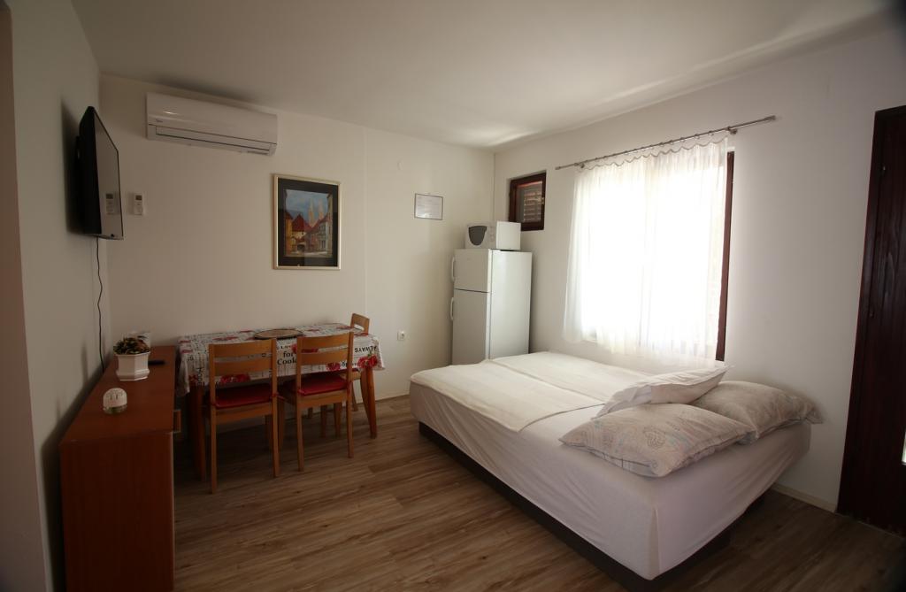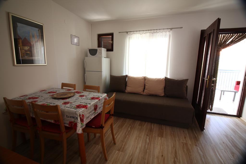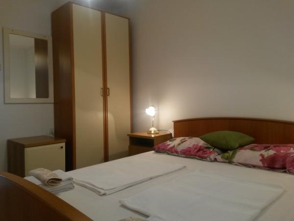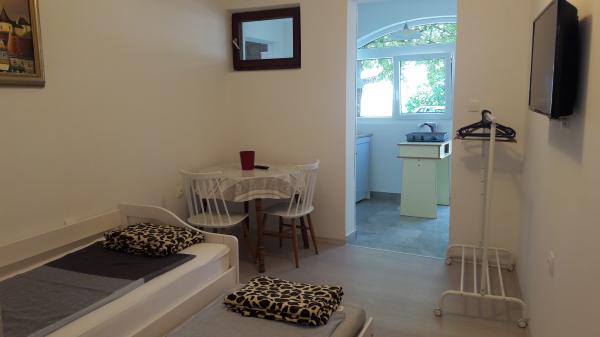 In einem ruhigen Teil von Sveti Vid befindet sich ein privates Doppelhaus mit funktional ausgestatteten Apartments für 2–6 Personen. Jedes Apartment verfügt über eine eigene Terrasse. Die Eigentümer wohnen im Erdgeschoss. Im Hof gibt es einen großen Tisch mit Bänken und einen Grill. Parkplätze stehen ebenfalls im Hof zur Verfügung. Das Zentrum von Malinska ist in 15 Minuten, der Strand in 20 Minuten zu Fuß erreichbar. In der Umgebung gibt es viele schöne Strände, Strandpromenaden und Radwege. Wer etwas unternehmen möchte, findet in der Nähe (ca. 2 km) den Nachtclub Diamant. Klimaanlage, Kurtaxe, Anmeldung, Endreinigung, Sat-TV, Bettwäsche, Handtücher, Geschirrtücher, Reinigungsmittel, Schwämme, Toilettenpapier und Seife sind im Preis inbegriffen. Parkplatz und WLAN stehen kostenlos zur Verfügung. ZUSÄTZLICHE KOSTEN: - Haustier = 5 €/Tag - 1 Hund - Wäscheservice = 3 € - Heizung ab 4-6 €/Tag - 1 Nacht ist 30 % teurer - Vom 10.7. bis 25.8. ist ein Mindestaufenthalt von 7 Nächten möglich, außer zur Überbrückung von Lücken zwischen Buchungen - Vom 1. bis 9. Juli und vom 25. bis 31. August ist ein Mindestaufenthalt von 5 Nächten möglich