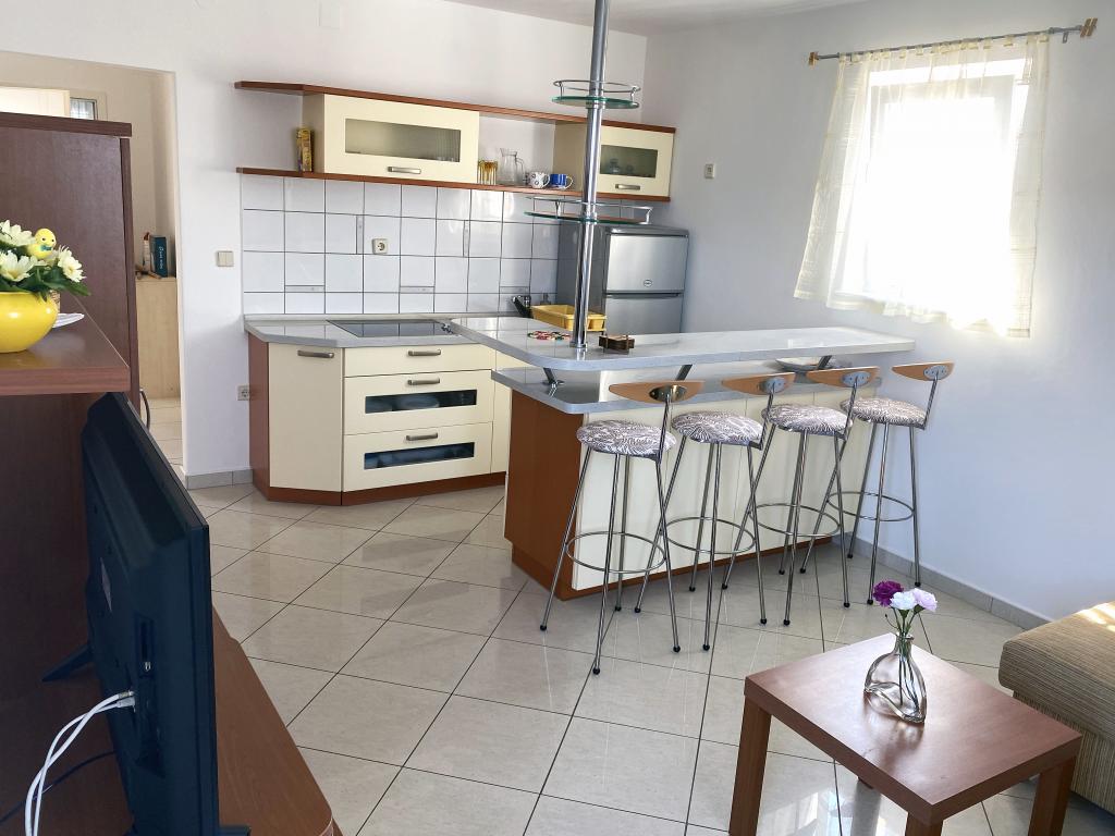 Moderne und reich eingerichtete Apartments in einem Familienhaus in einem sehr ruhigen Teil von Malinska. Das Haus liegt in der Nähe des Stadtzentrums, die Entfernung zum Stadtmarkt und zum Stadtzentrum beträgt nur 5 Minuten. Entlang der Küste in Malinska, vom Zentrum aus, gibt es eingerichtete und ausgestattete Badebereiche; Kies- und Sandstrände, geeignet für kleine Kinder oder einsame Buchten zum Entspannen; Jeder hat die Wahl. Alle unsere Appartements sind für 4 Personen ausgelegt (5. Person auf Anfrage). Sie verfügen über ein separates Schlafzimmer, Wohnzimmer, Küche, WC, Flur und Balkon oder Terrasse. Die Wohnungen im Erdgeschoss haben Zugang zum Garten und die Wohnungen im ersten Stock des Hauses verfügen über einen großen Balkon mit Blick auf das Meer. Im Garten gibt es einen Grill und einen Pavillon, der genutzt werden kann. Alle Wohnungen verfügen über gesicherte Parkplätze für alle Gäste. Die Wohnungen im ersten Stock des Hauses sind mit einer Klimaanlage ausgestattet, ebenso die Wohnung ID 3470 im Erdgeschoss. Alle Wohnungen verfügen über LCD-SAT-TV, sowie kostenfreies WLAN. Die Apartments im Erdgeschoss verfügen über Geschirrspüler. Eine Waschmaschine steht auf Anfrage und gegen Aufpreis zur Verfügung.