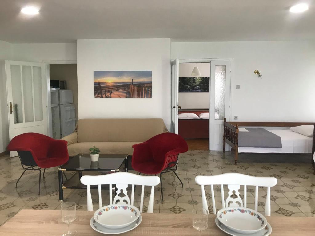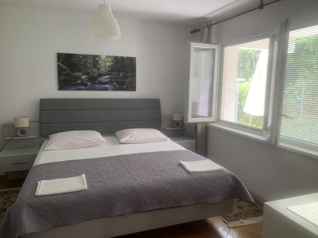 Kurtaxe ist im Preis inbegriffen. Buchungsbestätigungsdokument bei ReservierungFerienwohnung 2+2 (55 m2) befindet sich im Erdgeschoss und besteht aus einem Schlafzimmer mit Doppelbett und zwei Zustellbetten im Wohnzimmer (zwei Betten mit Matratzen). Die Küche ist mit Geschirr, Kühlschrank mit Gefrierfach, Mikrowelle, Elektroherd mit Backofen, Wasserkocher und Kaffeemaschine ausgestattet. Die Ferienwohnung verfügt über eine Vorder- und eine Hinterterrasse. Haustiere sind gegen einen Aufpreis von 5 € pro Tag und Haustier willkommen. ------------------------------------------------------------------ Ferienwohnung 4+2 (85 m2) befindet sich im ersten Stock und besteht aus 2 Schlafzimmern mit Doppelbetten und 2 Zustellbetten im Wohnzimmer. Die Ferienwohnung verfügt über ein Badezimmer (Dusche/WC) und ein separates WC. Die Küche ist mit Geschirr, Doppelkühlschrank mit Gefrierfach, Mikrowelle, Elektroherd mit Backofen, Wasserkocher und Filterkaffeemaschine ausgestattet. Die Ferienwohnung verfügt über eine große Terrasse an der Vorderseite zum Innenhof und einen Balkon zum Garten.