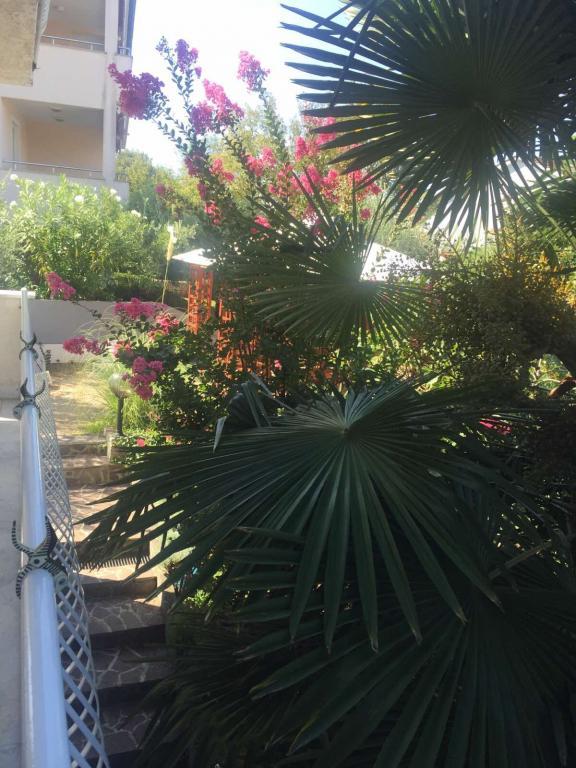 Blick auf den Garten und den Pavillon, wo die Gäste abends eine romantische Umgebung mit diskreter Beleuchtung und Blumen bei einem Glas guten Weins und gegrillten Köstlichkeiten genießen. Der Geruch lokaler Fischspezialitäten kommt aus dem nahe gelegenen Fischrestaurant / 200 m von der Wohnung entfernt /. Zusätzliche Einrichtungen in der Nähe: Bowling, Reiten, verschiedene Wassersportarten, Fahrradverleih, Boote, organisierte Ausflüge, lange und schöne Promenaden sind die Möglichkeiten, die der Ort bietet.