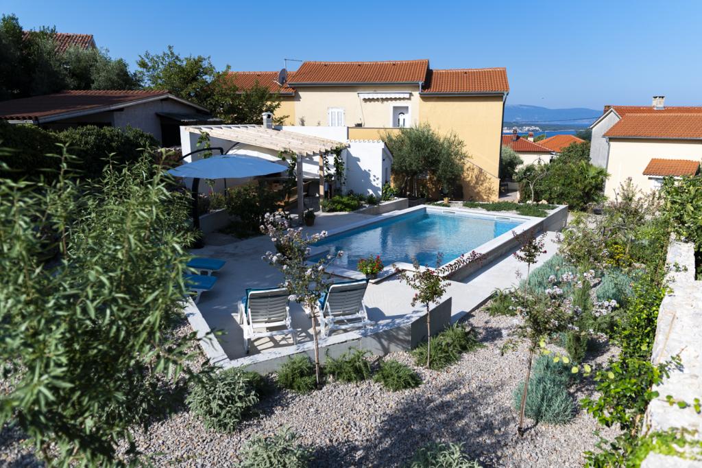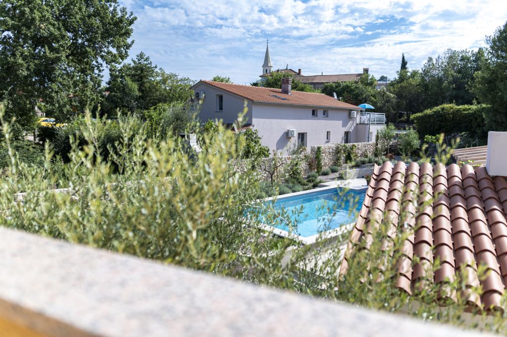 Villa Danica, auf der Insel Krk in Malinska, Dorf Sveti Vid gelegen, verfügt über drei Wohnungen im Haupthaus und links daneben befindet sich ein freistehender Bungalow. Alle Wohnungen verfügen über einen eigenen Eingang, jeweils ein Schlafzimmer, Küche mit Esszimmer, Badezimmer, Sitzterrasse sowie Klimaanlage, Sat-TV und WLAN. Im Hof mit viel Grün und Olivenbäumen gibt es einen neuen Swimmingpool mit Liegewiese und Grill für alle Gäste, sowie einen Parkplatz für vier Autos. Zum Meer und zum Zentrum von Malinska sind es ca. 1 km bzw. 10 Minuten. Spaziergänge. In der Nähe gibt es mehrere Einkaufsmöglichkeiten und gute Restaurants. Der Flughafen ist 13 km entfernt. Haustiere nach Absprache. Einige Apartments bieten einen wunderschönen Blick auf das Meer.