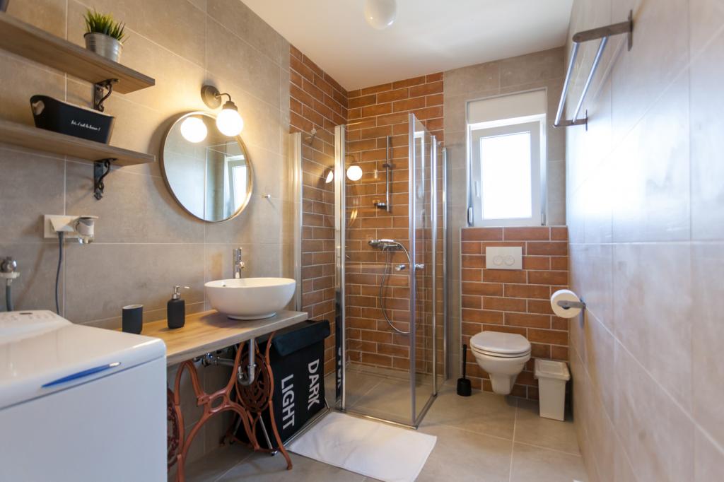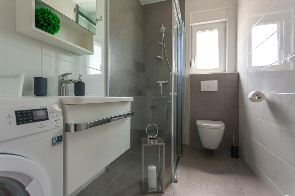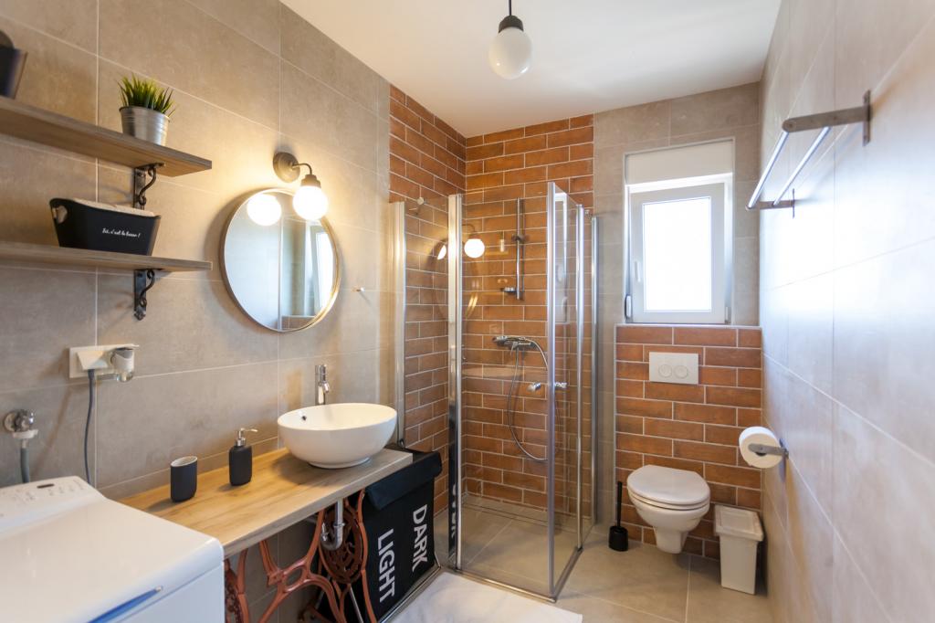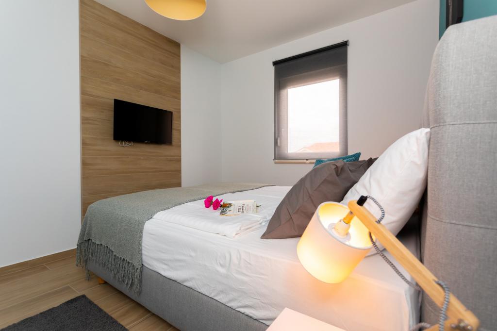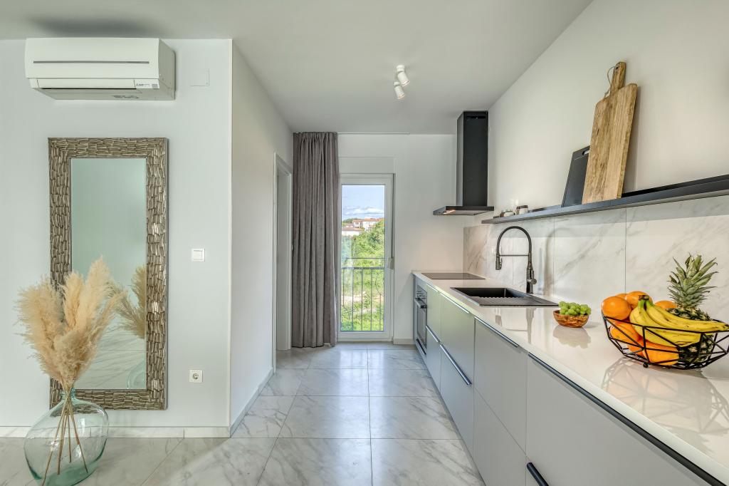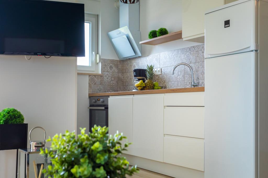 Die Villa FE bietet moderne und elegant eingerichtete Apartments mit herrlichem Meerblick in einem ruhigen und attraktiven Teil von Malinska-Rova, nur 300 Meter vom Strand entfernt. Die Villa besteht aus fünf modern ausgestatteten Apartments: eines im Untergeschoss, zwei im ersten und zwei im zweiten Stock. Die Apartments in den oberen Etagen verfügen über einen privaten Balkon, der zum Entspannen mit Blick auf die Adria einlädt. Die Inneneinrichtung ist modern und mit sorgfältig ausgewählten Möbeln gestaltet und garantiert einen komfortablen und angenehmen Aufenthalt. Zur Ausstattung gehören Klimaanlage in den Gemeinschaftsräumen und Schlafzimmern, ein Fernseher sowie kostenloses und schnelles WLAN im gesamten Gebäude. Dank ihrer hervorragenden Lage in der Nähe von Stränden, Restaurants und Einkaufsmöglichkeiten ist die Villa FE die perfekte Wahl für einen romantischen Urlaub, einen Familienurlaub oder eine erholsame Auszeit am Meer.